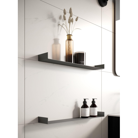 La forme étroite et rectangulaire et la ligne épurée créent un véritable accent design dans votre salle de bains. Comme la tablette est encastrée dans le mur et raccordée aux joints de vos carreaux, elle donne l’impression de flotter librement dans l’espace. Cela offre immédiatement une impression ordonnée et apaisante, même si vous placez plusieurs flacons ou accessoires. L’aspect industriel de la couleur anthracite s’harmonise parfaitement avec les salles de bains modernes dotées de carreaux effet béton, d’accents noirs ou d’un style minimaliste. Vous ajoutez ainsi du caractère sans alourdir l’ensemble, et toute l’attention reste portée sur l’harmonie de votre salle de bains plutôt que sur les accessoires isolés.