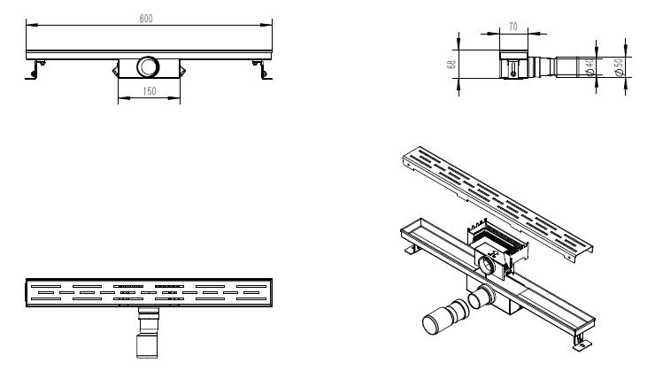 Le Caniveau de douche Saniclass sans flasque dans les dimensions 60x7x6.7cm est un produit magnifique et fonctionnel qui s'intègre parfaitement dans toute salle de bain moderne. Avec son design élégant et sa finition en inox de haute qualité, ce caniveau de douche ajoute une touche de style à votre espace douche. Le design à fond creux et la sortie latérale assurent un drainage efficace de l'eau, tandis que le matériau durable garantit une utilisation prolongée. Profitez d'une expérience de douche luxueuse avec le Caniveau de douche Saniclass.