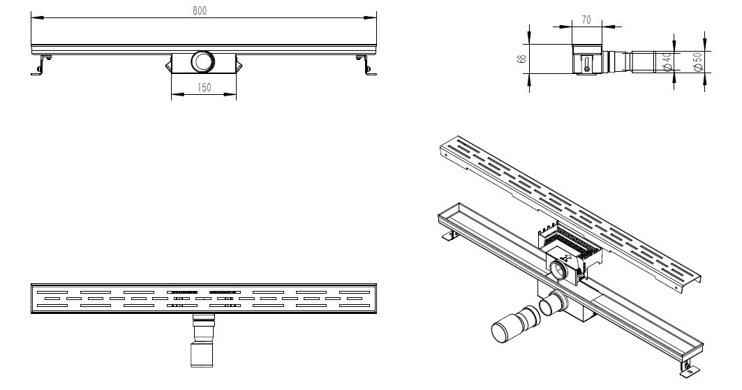 Le Caniveau de douche Saniclass est conçu avec l'efficacité à l'esprit. Grâce à son design à fond creux, ce caniveau s'intègre parfaitement dans chaque espace de douche et assure un drainage rapide et efficace de l'eau. Le design à sortie latérale minimise les obstructions et garantit une expérience de douche sans problème. Avec ce caniveau de douche, vous êtes assuré d'un drainage optimal de l'eau et d'un environnement de salle de bain hygiénique.