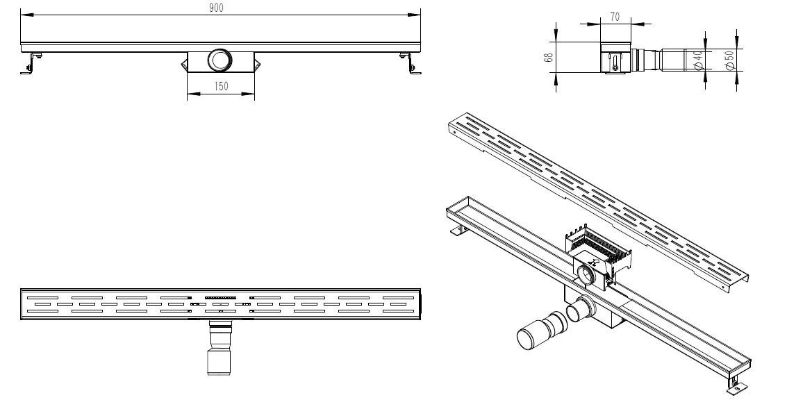 Avec son design réfléchi et sa fonctionnalité efficace, le Caniveau de douche Saniclass offre un drainage optimal de l'eau et empêche ainsi l'accumulation d'eau dans la douche. La sortie latérale permet une distribution uniforme de l'eau et minimise les éclaboussures, gardant le sol sec et sûr. Ce caniveau de douche est non seulement un élément visuellement attrayant dans la salle de bain, mais aussi un choix pratique et fiable pour un usage quotidien.