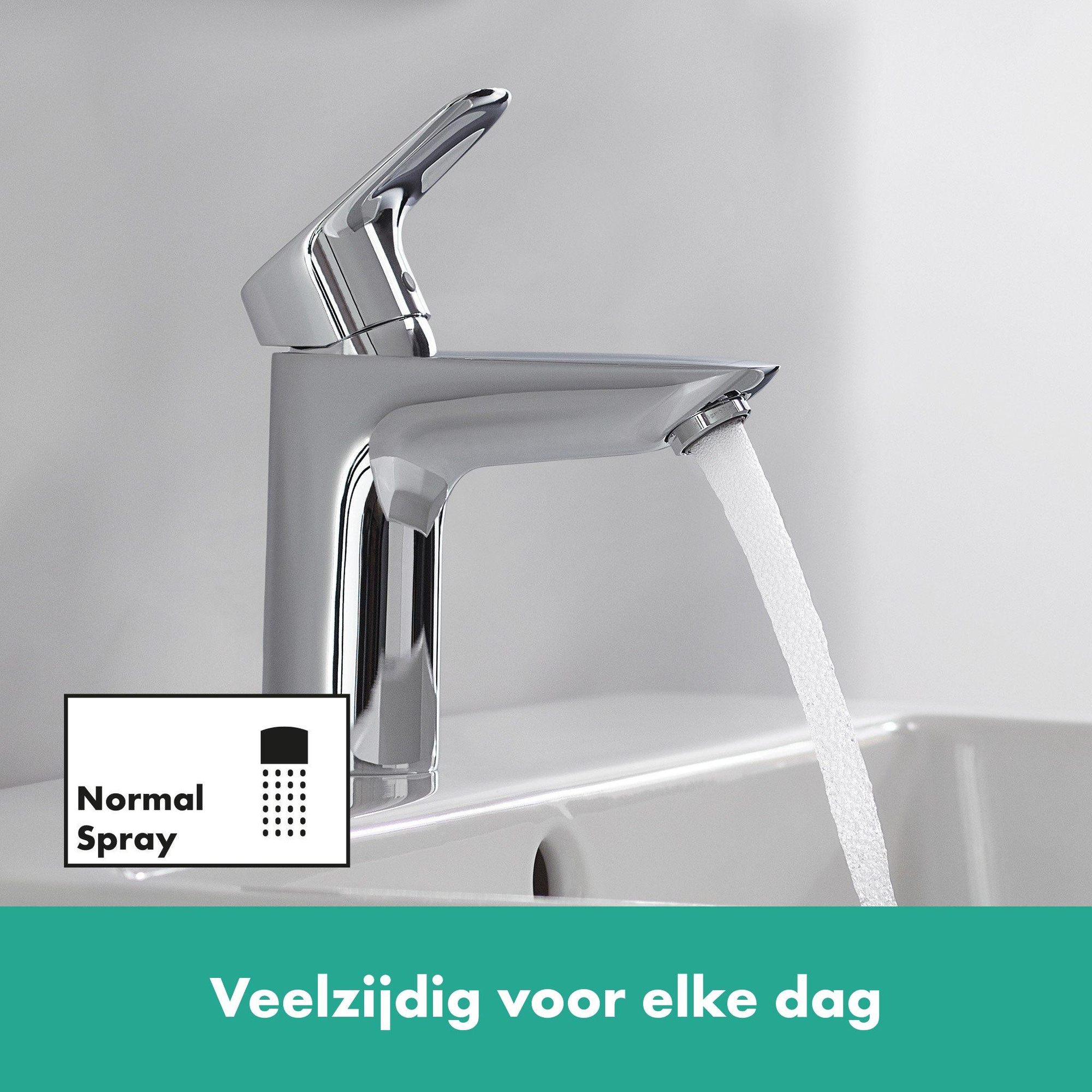 La facilité d’utilisation est au cœur de ce modèle. Le robinet enrichit l’eau en air (AirPower), ce qui rend le jet plus plein et plus doux, sans éclaboussures. La ComfortZone de 100 mm entre le bec et le lavabo offre suffisamment d’espace pour se laver les mains facilement ou remplir un seau. La garniture de vidage PushOpen fonctionne simplement par pression, ce qui rend la commande intuitive et hygiénique. De plus, la limiteur de température réglable vous protège contre l’eau trop chaude, offrant une sécurité supplémentaire pour toute la famille.