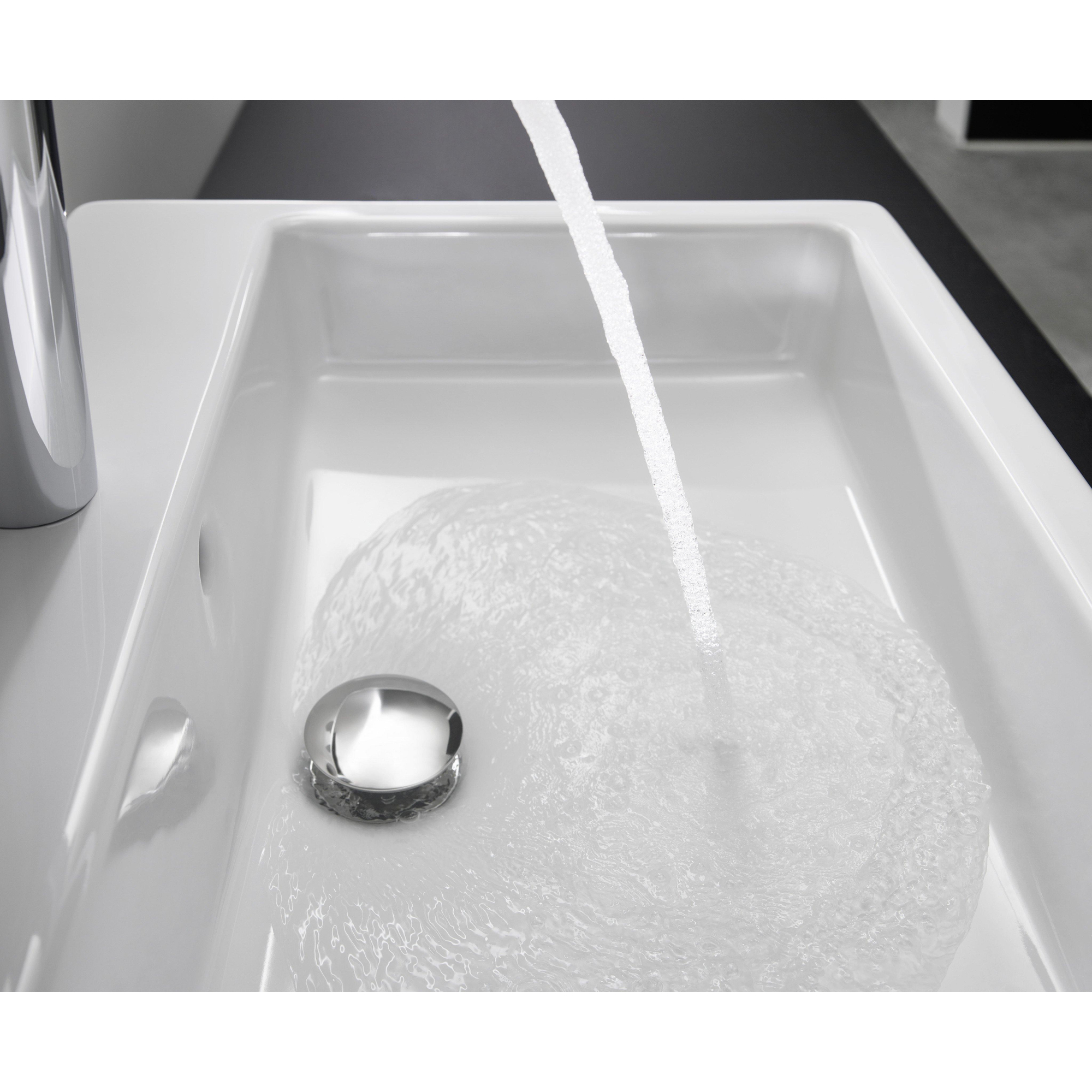 Le design de ce robinet est un mélange parfait de simplicité et d’élégance. La finition chrome brillante confère un aspect luxueux qui reste beau longtemps grâce au revêtement durable. Le levier ouvert arrondi est non seulement agréable à regarder, mais aussi conçu de manière ergonomique pour une commande agréable et précise. Grâce au design minimaliste avec une garniture de vidage PushOpen sans levier à l’arrière, la surface de votre lavabo paraît calme et ordonnée. Vous ajoutez ainsi un élément stylé qui donne immédiatement un coup de neuf à votre salle de bains.