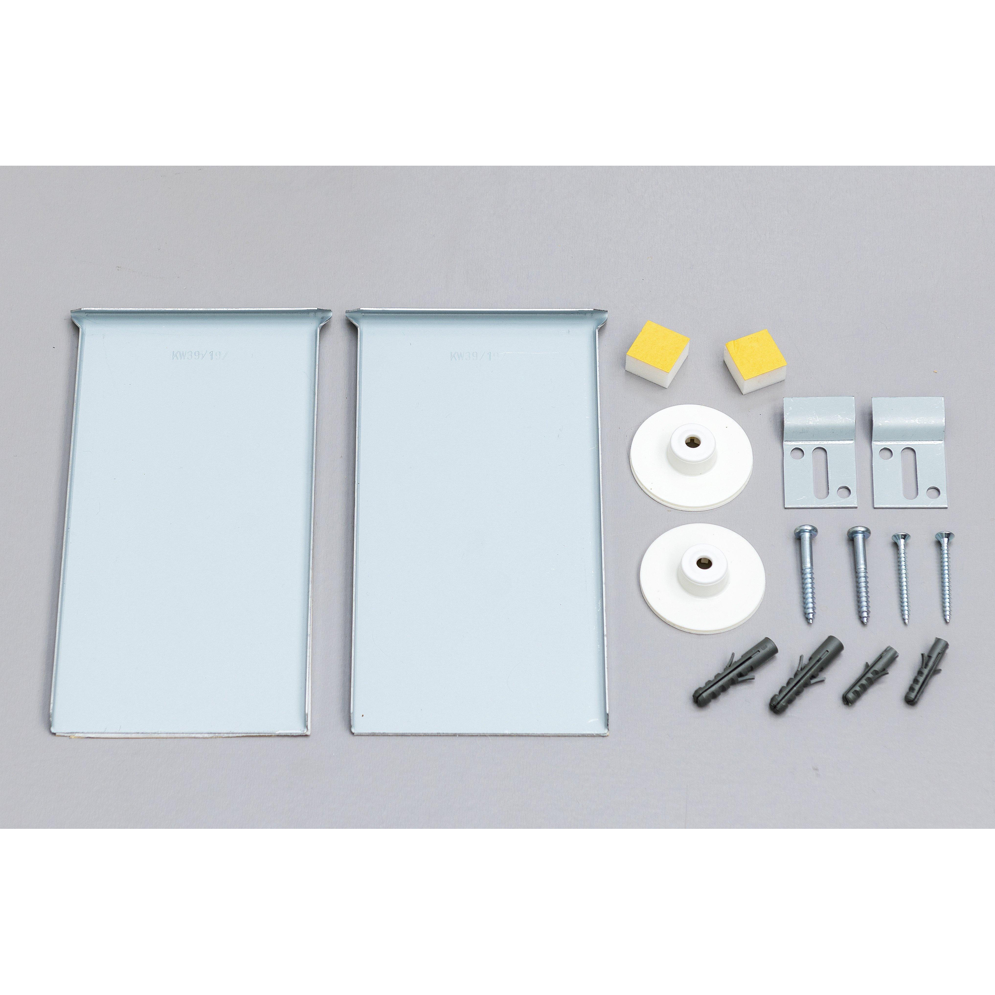 Le kit est réalisé en aluminium, un matériau léger mais à la fois solide et indéformable. Idéal dans une pièce humide comme la salle de bains, car l’aluminium ne peut pas rouiller et demande peu d’entretien. C’est donc un choix durable : vous n’avez pas à craindre que la fixation soit endommagée après quelques années par la condensation ou les variations de température. Le faible poids facilite en plus le montage, tandis que la solidité garantit que le miroir reste correctement en place pendant de nombreuses années. Vous combinez ainsi une installation simple avec un plaisir durable d’une suspension fiable.Caractéristiques :