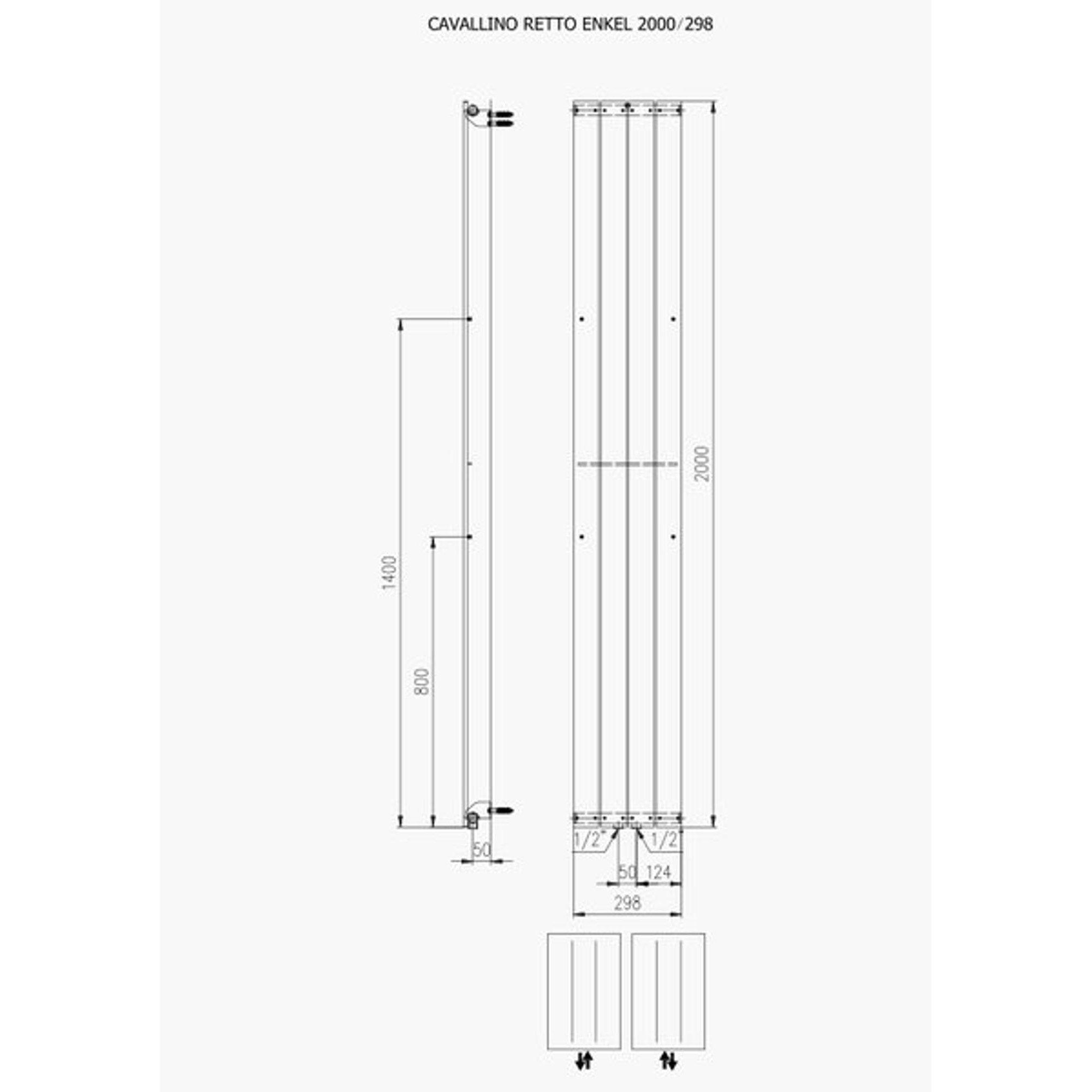 Plieger Cavallino Retto radiateur décoratif vertical simple raccordement central 2000x298mm 666W blanc mat