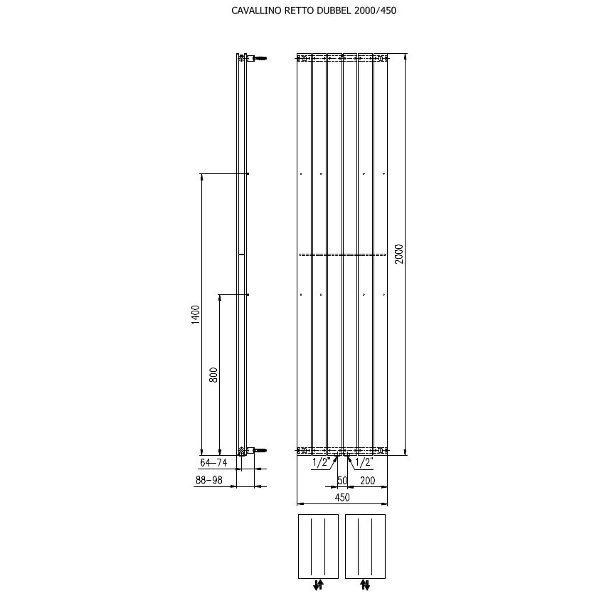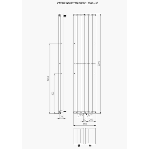 Plieger Cavallino Retto radiateur design vertical double raccordement central 2000x450mm 1287W blanc