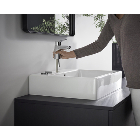 La facilité d'utilisation est au centre de ce modèle. Le robinet est équipé d'un ensemble de vidage à tirette pratique que vous commandez facilement d'une seule main. La ComfortZone de 70 mm entre le bec et le lavabo offre suffisamment d'espace pour un lavage des mains confortable. Grâce à la technologie AirPower, l'eau est enrichie en air, ce qui crée un jet doux, plein et sans éclaboussures. De plus, le limiteur de température réglable vous protège contre l'eau trop chaude, offrant une sécurité supplémentaire pour toute la famille.