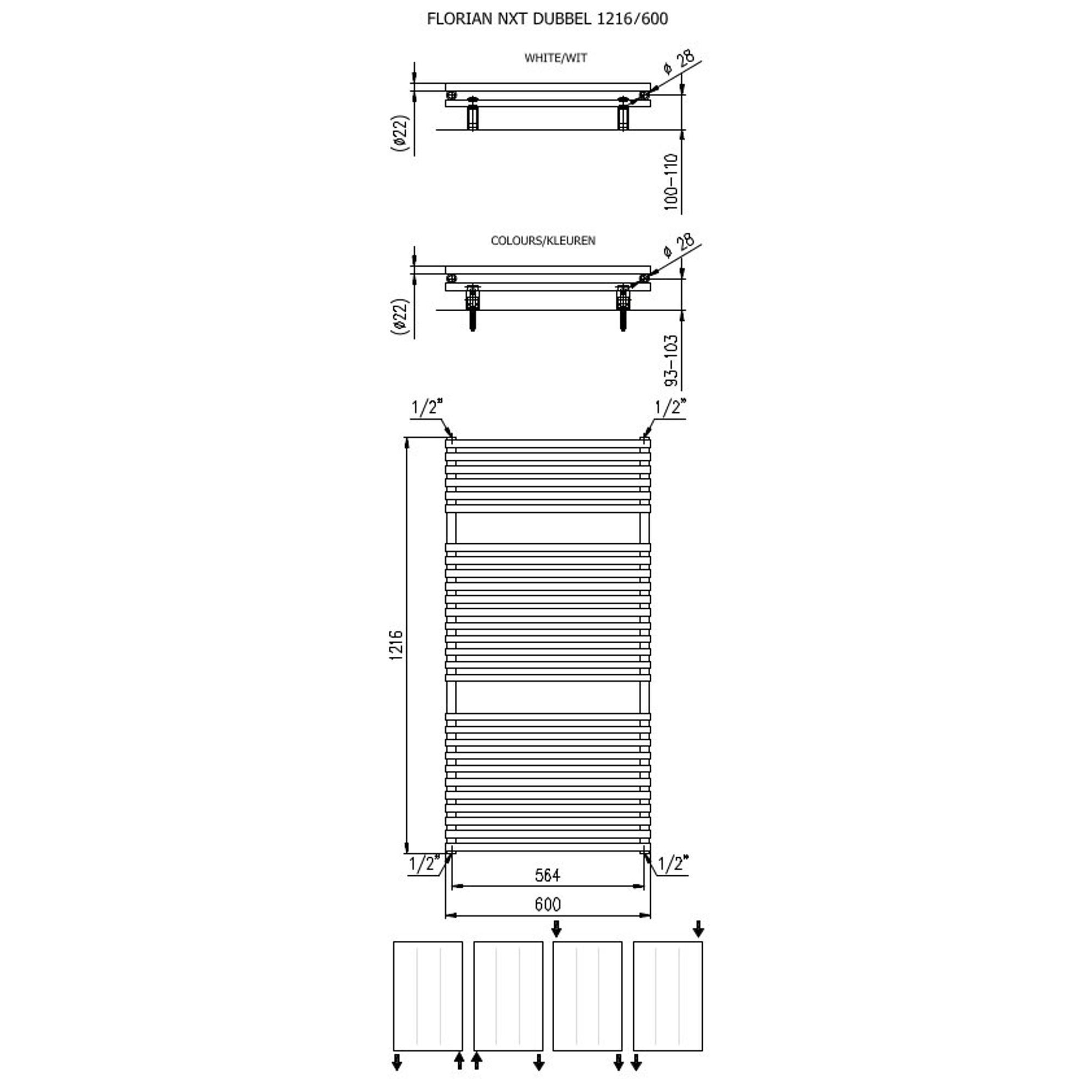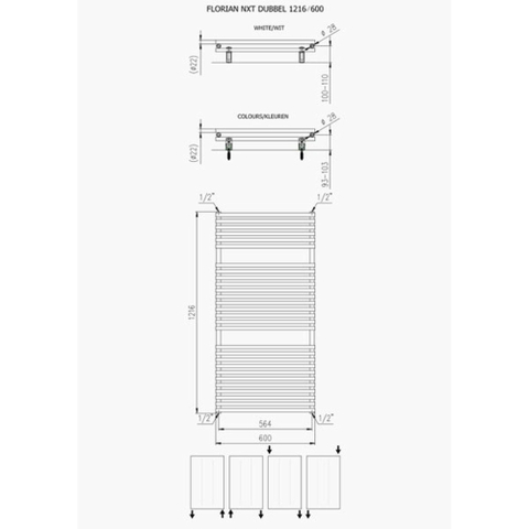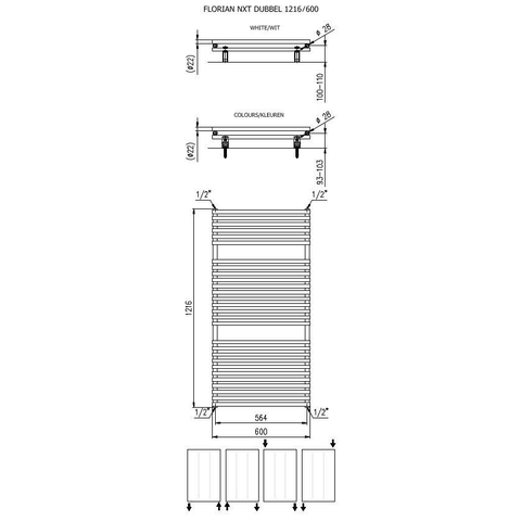 La forme horizontale combinée à la couleur blanche mate donne une apparence calme et orientée design à votre salle de bains ou espace de vie. Le blanc mat est particulièrement adapté si vous visez un look moderne, épuré ou scandinave, car il réfléchit moins la lumière et se fond élégamment avec les murs blancs et les équipements sanitaires. Grâce à la largeur de 1216 mm et à la hauteur de 600 mm, ce radiateur habille le mur de manière élégante, sans dominer l’espace. Il affiche une allure épurée et minimaliste, tout en étant suffisamment robuste pour occuper une place de choix dans l’intérieur. Si vous souhaitez prolonger ce style dans le reste de votre habitation, il est appréciable que cette série soit disponible en plusieurs dimensions et couleurs, afin de créer une harmonie.