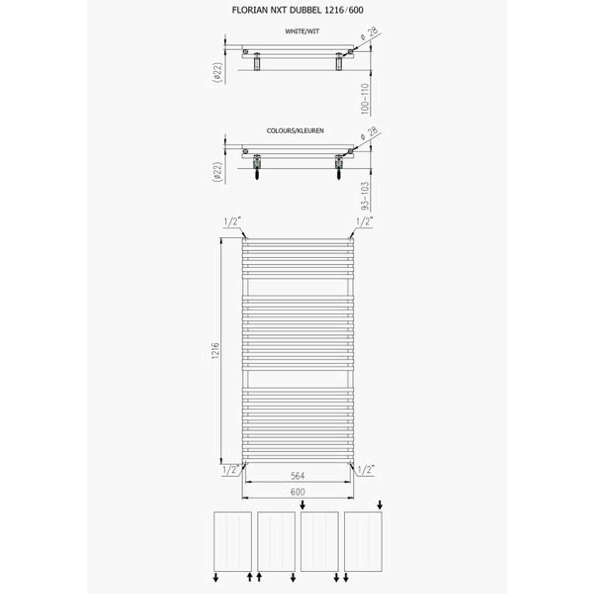 Plieger Florian Nxt radiateur design double horizontal 1216x600mm 980W blanc mat
