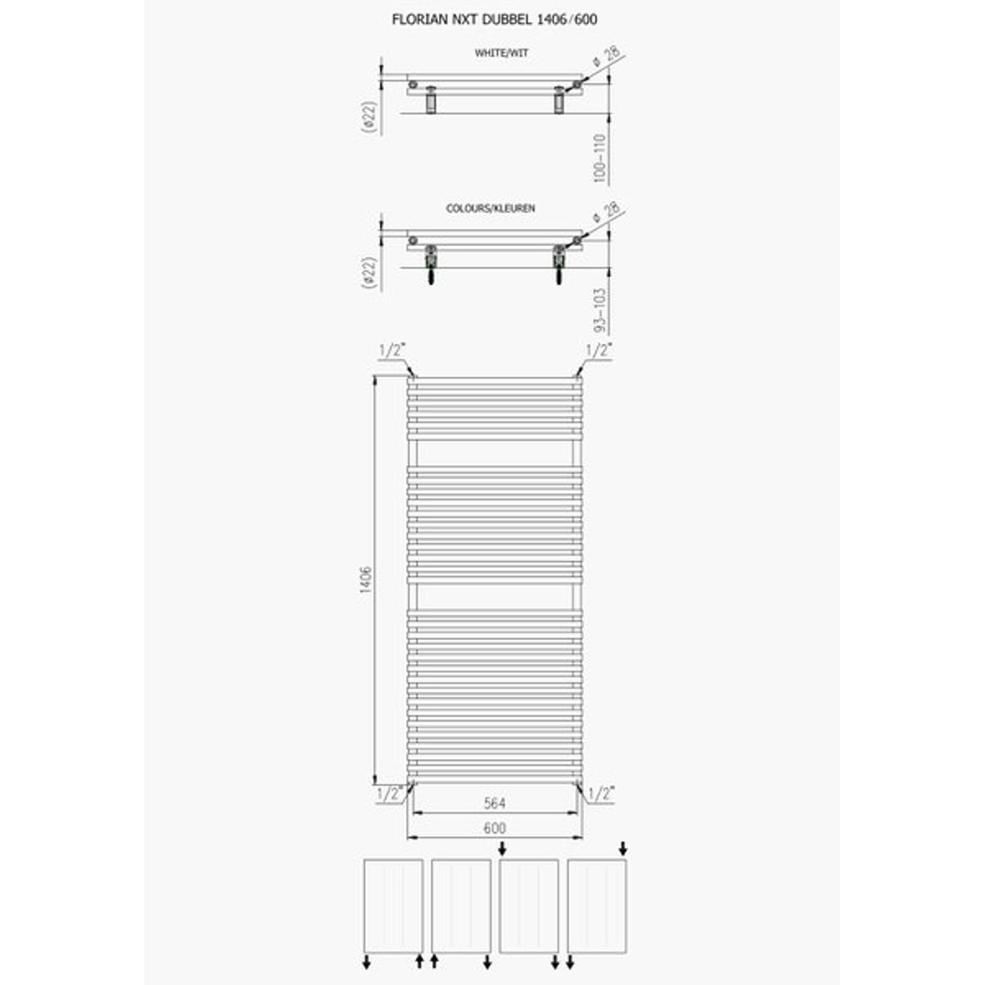 Plieger Florian Nxt radiateur design double horizontal 1406x600mm 1153W blanc mat