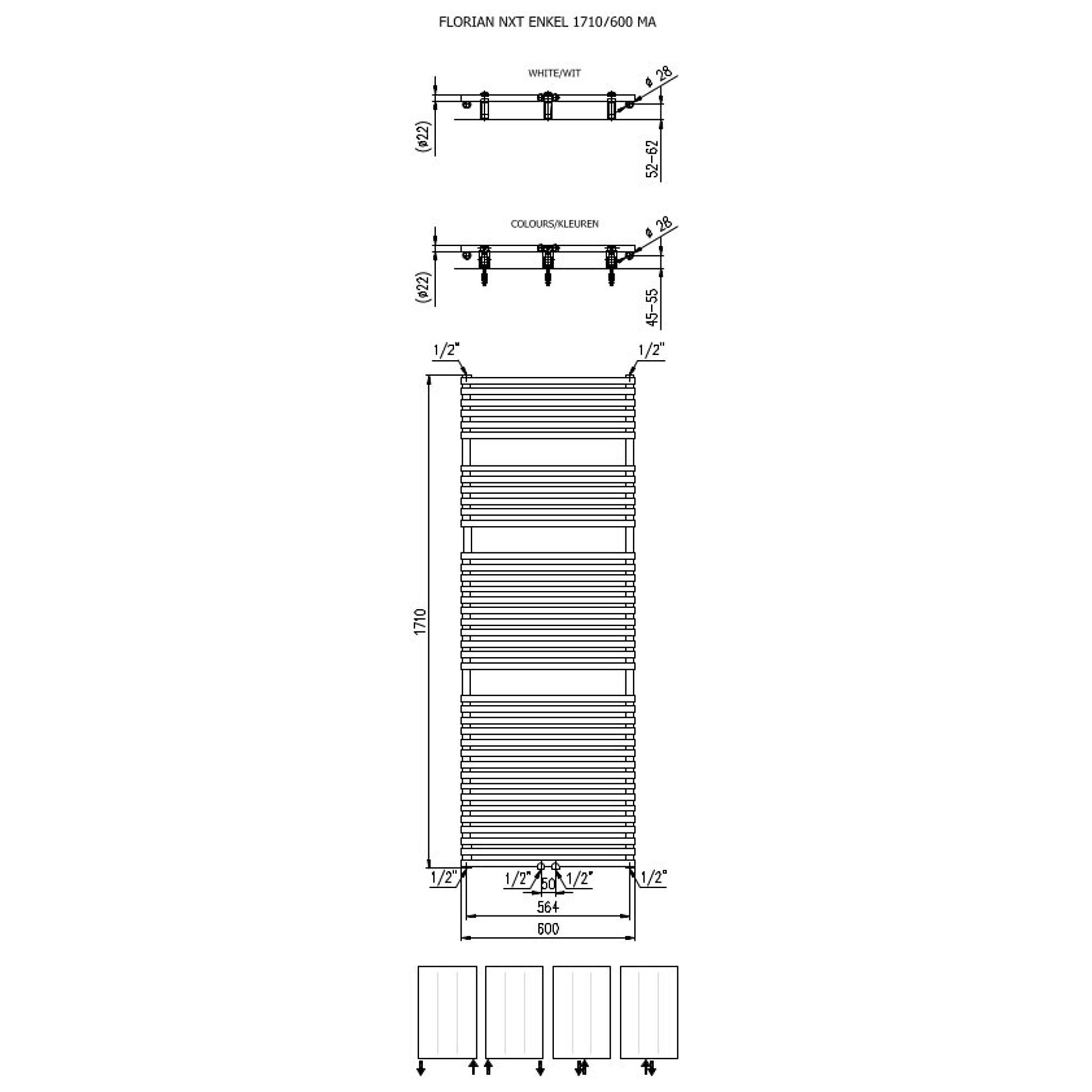 Classique polyvalent. Le Florian NXT est un ami populaire de tous. Disponible en version simple et double, dans différentes tailles et 12 couleurs. Et avec des porte-serviettes, anneaux ou crochets assortis. Il existe également un élément chauffant qui vous permet d'utiliser le NXT comme radiateur électrique.