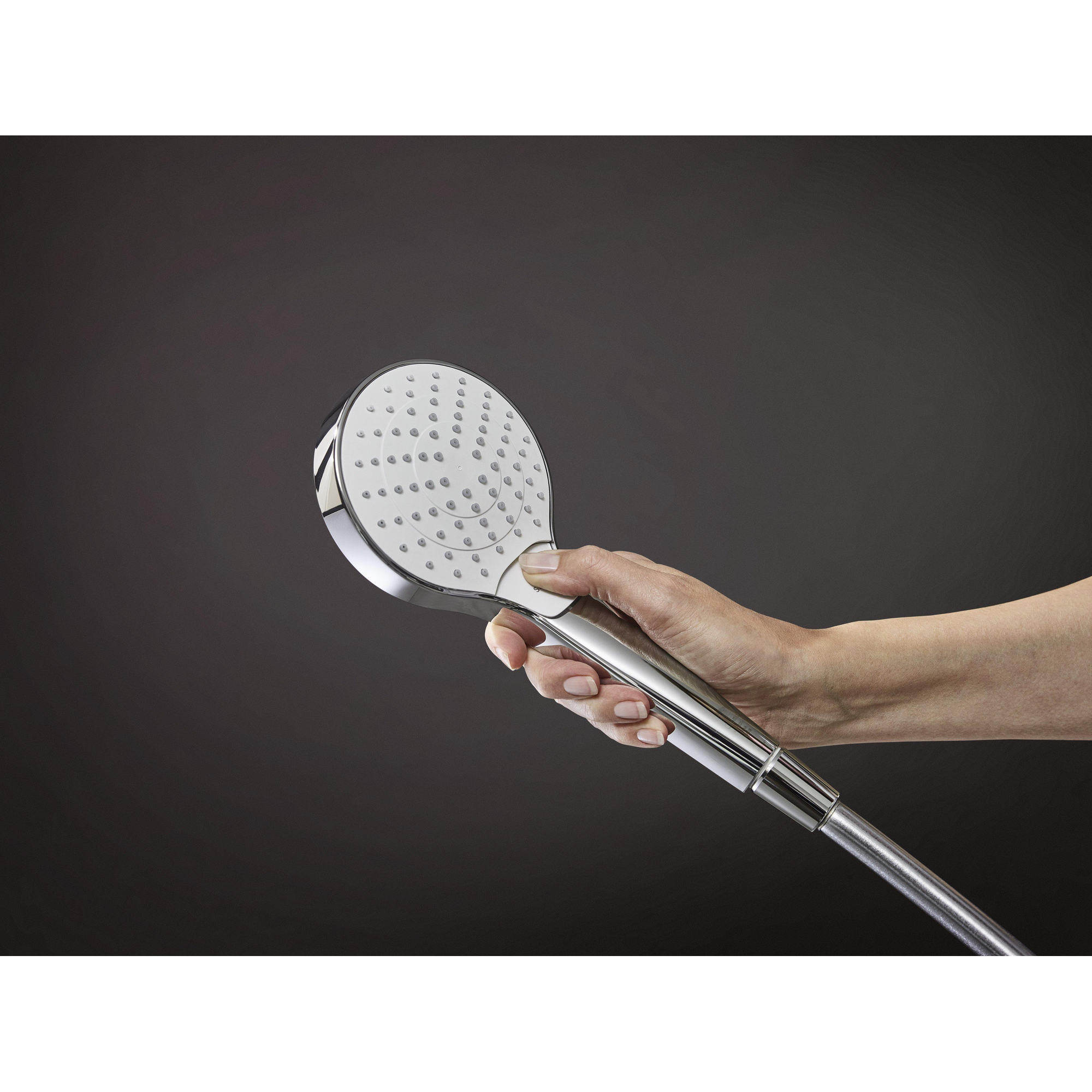 Cet ensemble est particulièrement convivial et flexible à régler. La barre coulissante de 65 cm est réglable en hauteur de manière continue et le support peut être incliné à 45 degrés, vous permettant de positionner la douchette exactement comme vous le souhaitez. D’une simple pression sur un bouton, vous passez facilement entre trois types de jets différents : la douce pluie, l’IntenseRain puissante et la TurboRain rafraîchissante. Le flexible de douche de 1,60 mètre vous offre en outre toute la liberté de mouvement dont vous avez besoin. Grâce à la fixation anti-torsion spéciale, le flexible reste souple et sans plis, rendant la douche encore plus agréable.