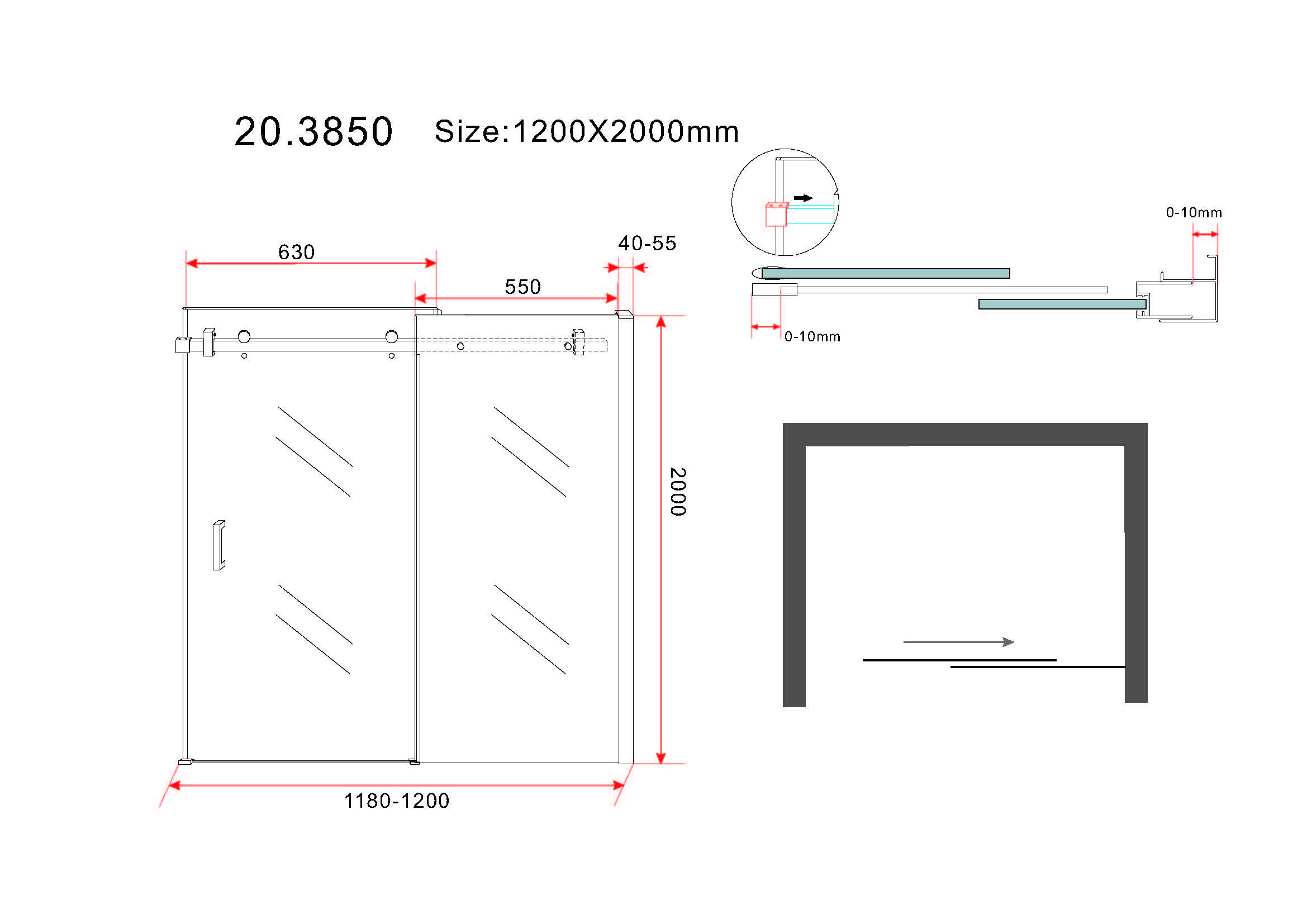 1200mm de large 2000mm de haut.