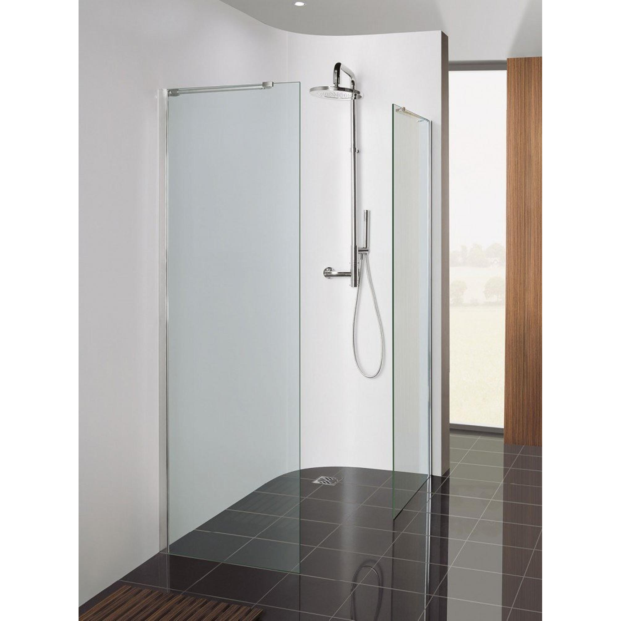 Avec une largeur de 20 cm, cette paroi latérale est idéale comme paroi anti-éclaboussures supplémentaire à côté d''une porte de douche ou d''une paroi de douche plus large. Vous pouvez ainsi adapter précisément la configuration de votre coin douche à votre situation : par exemple pour une douche à l''italienne à côté d''un demi-mur, ou pour garder au sec cette partie de sol juste à côté de la douche. La hauteur généreuse de 195 cm offre une bonne protection contre les éclaboussures, même avec des douches de pluie hautes. Le profilé d''angle argenté s''accorde parfaitement avec les ensembles de douche en chrome et en acier inoxydable très utilisés, ce qui vous permet de créer facilement un style calme et uniforme. Tenez compte du fait que le profilé mural n''est pas inclus, afin que vous puissiez choisir vous-même la solution la plus adaptée à votre mur et à votre situation.
