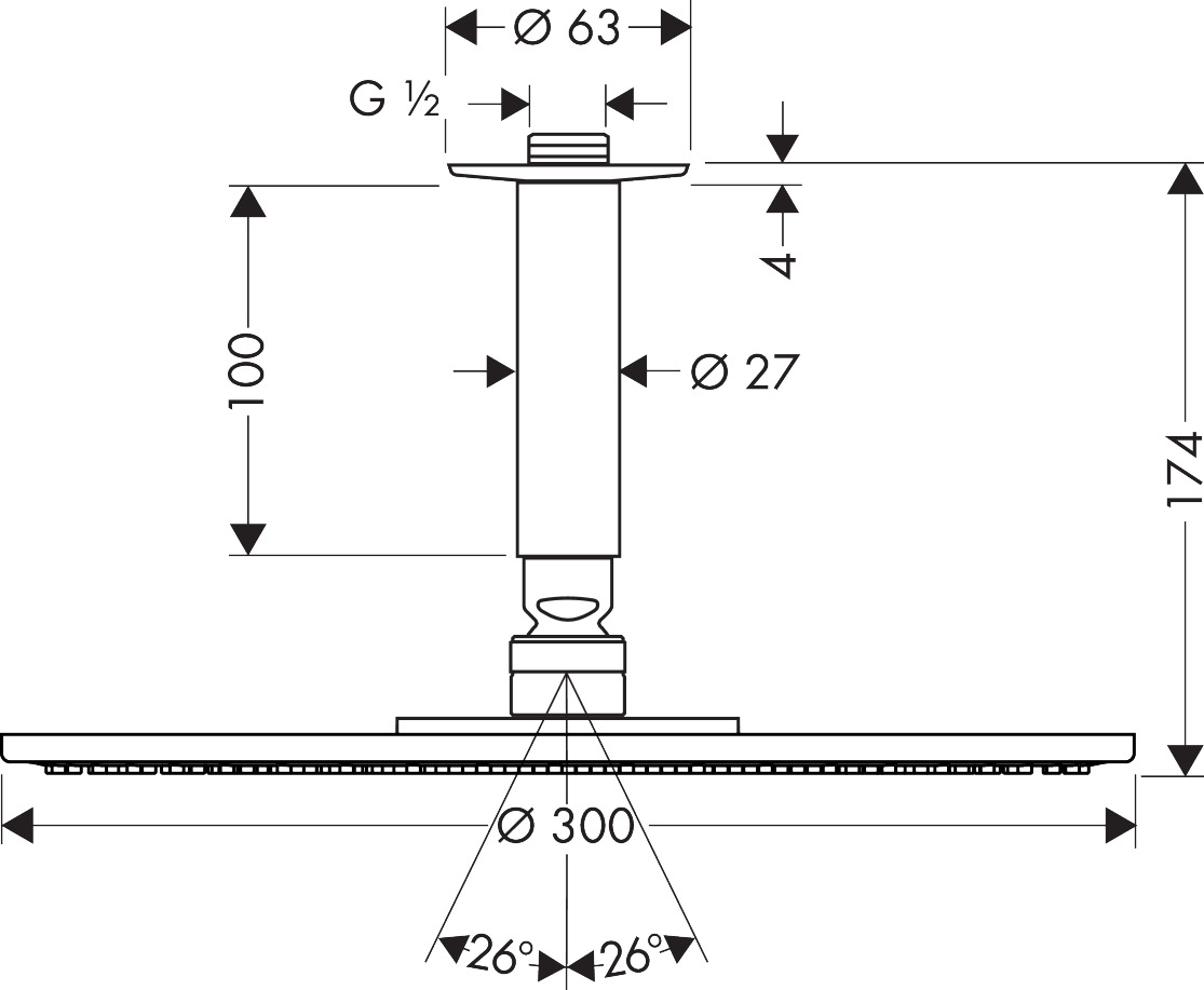 - Diamètre de la plaque de jet : 300 mm pour un jet d'eau large et pluvieux