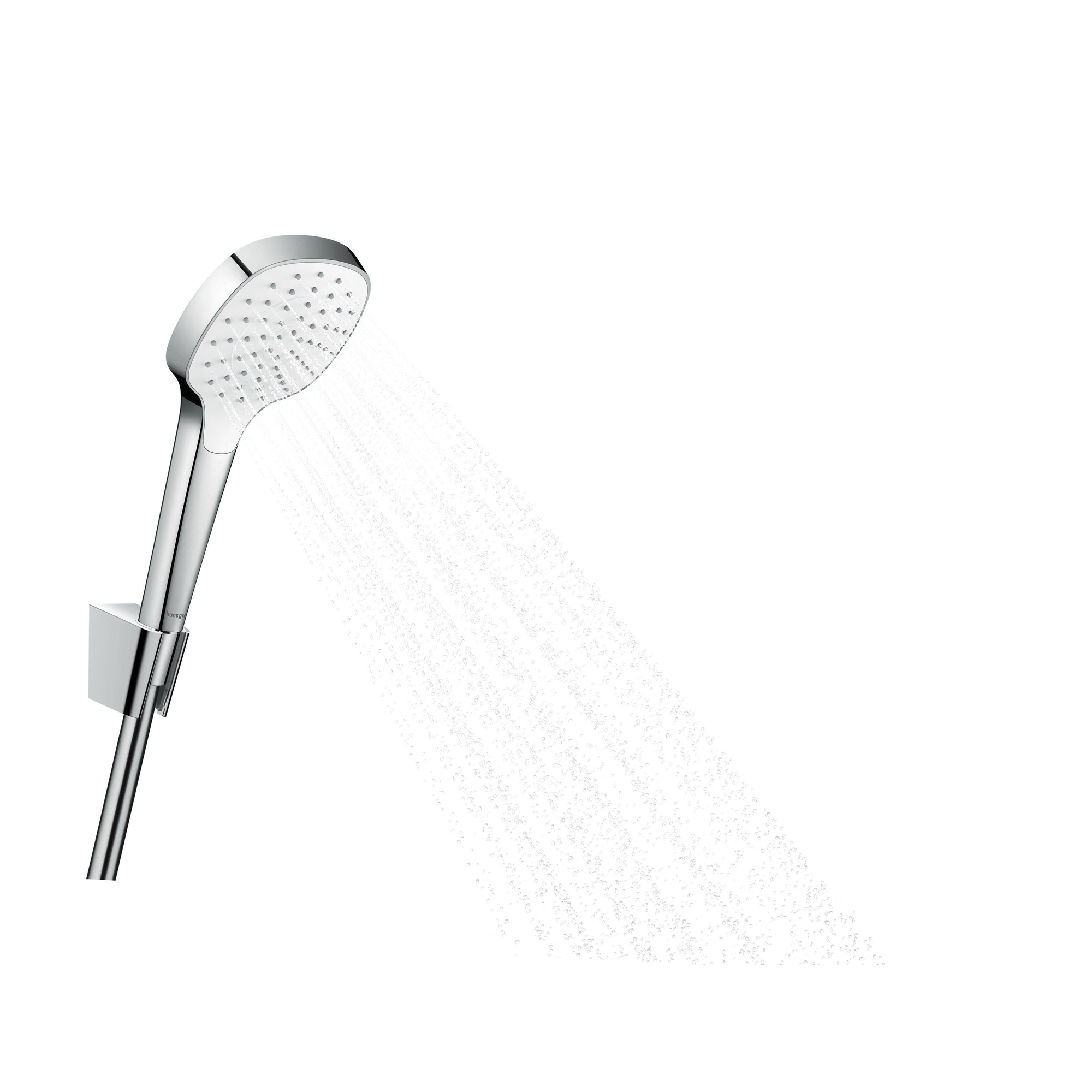 Hansgrohe Croma Select E Ensemble de douche PorterS avec douchette Croma Select E 1 jet avec support mural et flexible de douche Isiflex`B 125cm blanc/chrome