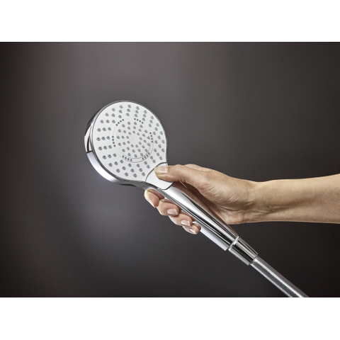 Cette douchette à main offre trois types de jets différents que vous pouvez changer facilement d'une simple pression sur un bouton. Que vous choisissiez le doux SoftRain pour une douche pluie relaxante, l'IntenseRain puissant pour un regain d'énergie, ou le jet massage ciblé pour détendre les muscles tendus, vous avez toujours le jet d'eau parfait à portée de main. Le diamètre généreux de 110 mm assure un jet d'eau uniforme et plein qui vous enveloppe complètement. Grâce à la connexion standard, la douchette est facile à monter sur presque tous les tuyaux de douche et convient aussi aux chauffe-eau instantanés. Vous profitez ainsi d'une flexibilité et d'un confort maximum sans tracas.