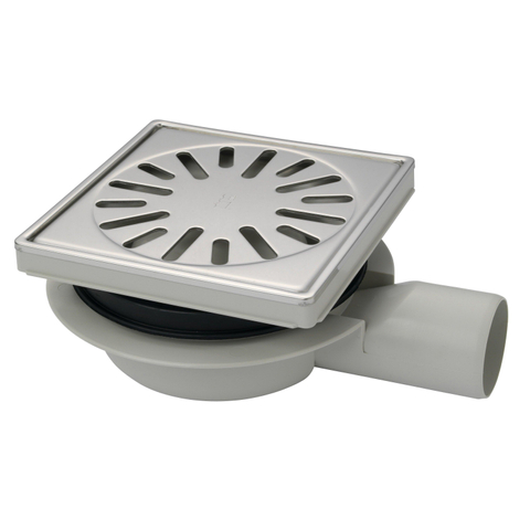 - Siphon de sol compact de 15x15 cm, idéal pour la douche et autres pièces humides.