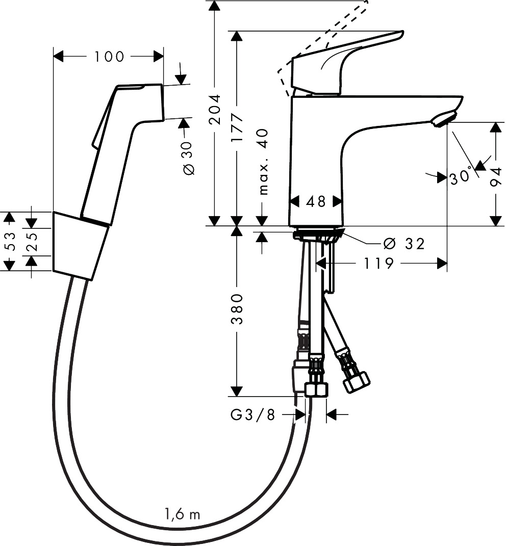 Hansgrohe Focus 100 Mitigeur bidet avec vidage et douchette chrome