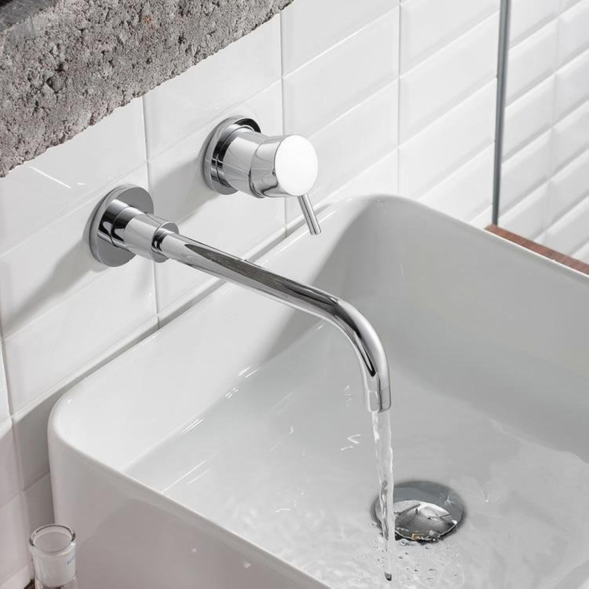 Ce robinet de lavabo encastré est idéal si vous recherchez une apparence épurée et spacieuse au niveau du lavabo, sans pied de robinet gênant sur la céramique ou le meuble. Comme la commande et le bec sont intégrés dans le mur, votre plan de lavabo paraît plus calme et offre davantage d’espace d’utilisation autour de la cuve. Cela rend ce modèle particulièrement adapté aux salles de bains modernes, aux meubles design et aux vasques épurées, mais aussi aux petites salles de bains où chaque centimètre compte. La finition chromée haute brillance s’harmonise aisément avec les autres accents en chrome tels que le mitigeur de douche, le radiateur sèche-serviettes et les accessoires. Grâce à la commande monolevier confortable et au choix entre deux becs différents, vous pouvez adapter précisément le jet d’eau à votre type de lavabo et à votre utilisation quotidienne, du lavage rapide des mains au nettoyage approfondi du visage.