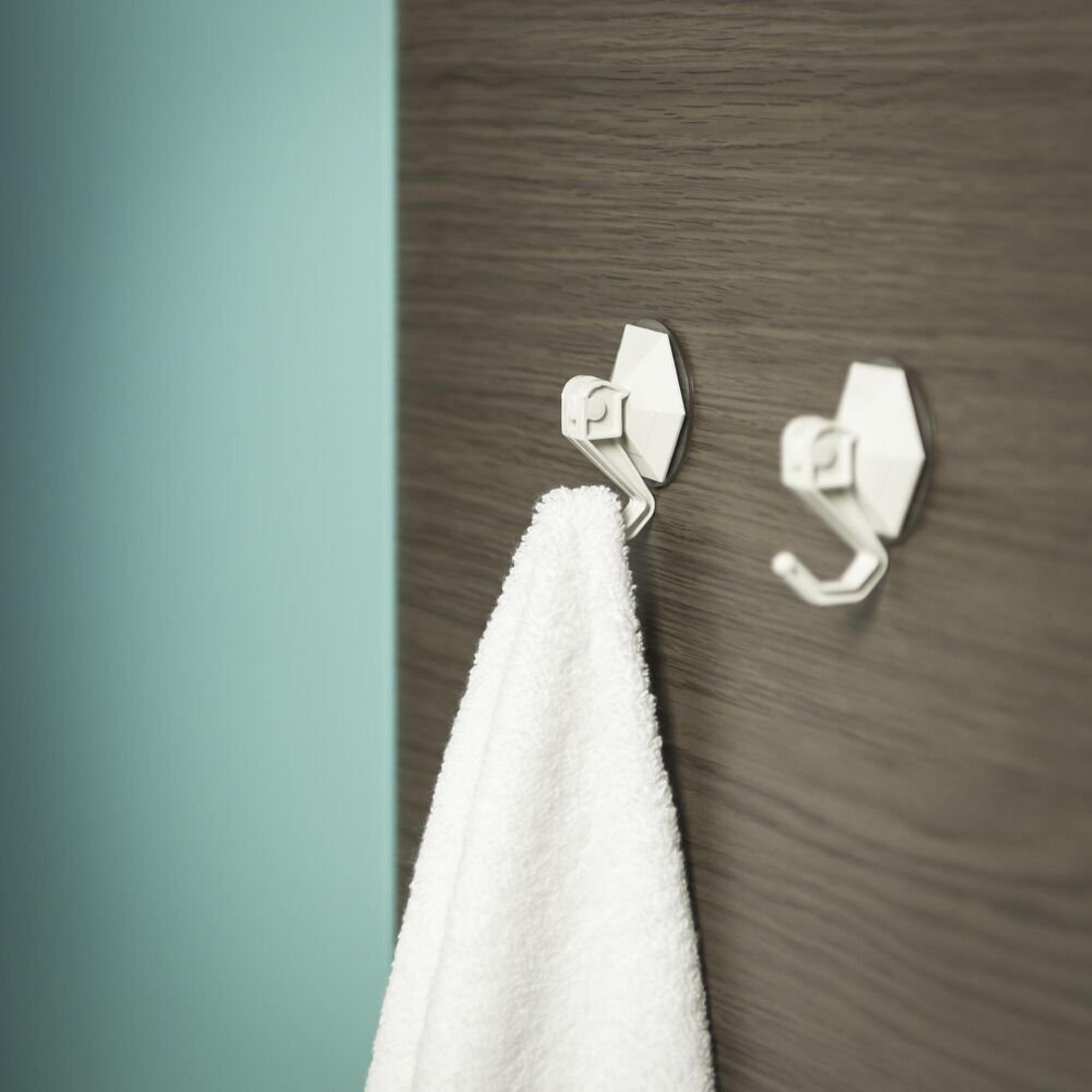 Comme vous recevez deux crochets dans un seul ensemble, vous pouvez immédiatement créer une combinaison pratique, par exemple pour une serviette et un gant de toilette à côté du lavabo, ou deux torchons de cuisine près de l’évier. Le format compact d’environ 4,5x6x3 cm les rend discrets, mais tout de même suffisamment fonctionnels pour les accessoires du quotidien jusqu’à environ 0,5 kg par crochet. Pensez aux serviettes d’invité, chiffons vaisselle, fleur de douche ou un peignoir léger. Grâce à la couleur blanche, ils se remarquent à peine sur des carreaux clairs, mais apportent tout de même de l’ordre : chaque chose trouve sa place, de sorte que votre salle de bains paraît rangée et apaisante, même aux moments chargés.