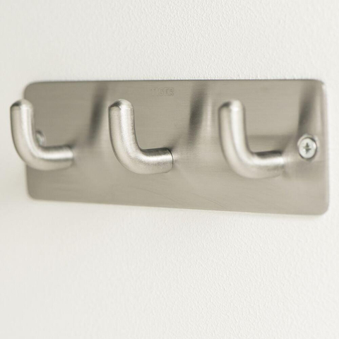 Le porte-crochets est fabriqué en acier inoxydable avec une finition brossée, un matériau parfaitement adapté aux pièces humides comme la salle de bains ou la cuisine. L’inox est réputé pour sa durabilité et sa stabilité de forme, de sorte que votre support reste beau même en cas d’utilisation quotidienne intensive. La structure brossée n’est pas seulement élégante, elle aide aussi à rendre les traces de doigts et les petites rayures moins visibles. Avec une capacité de charge jusqu’à 5 kg, vous pouvez suspendre en toute sérénité plusieurs serviettes ou autres accessoires, sans craindre qu’il ne se déforme ou se détache.