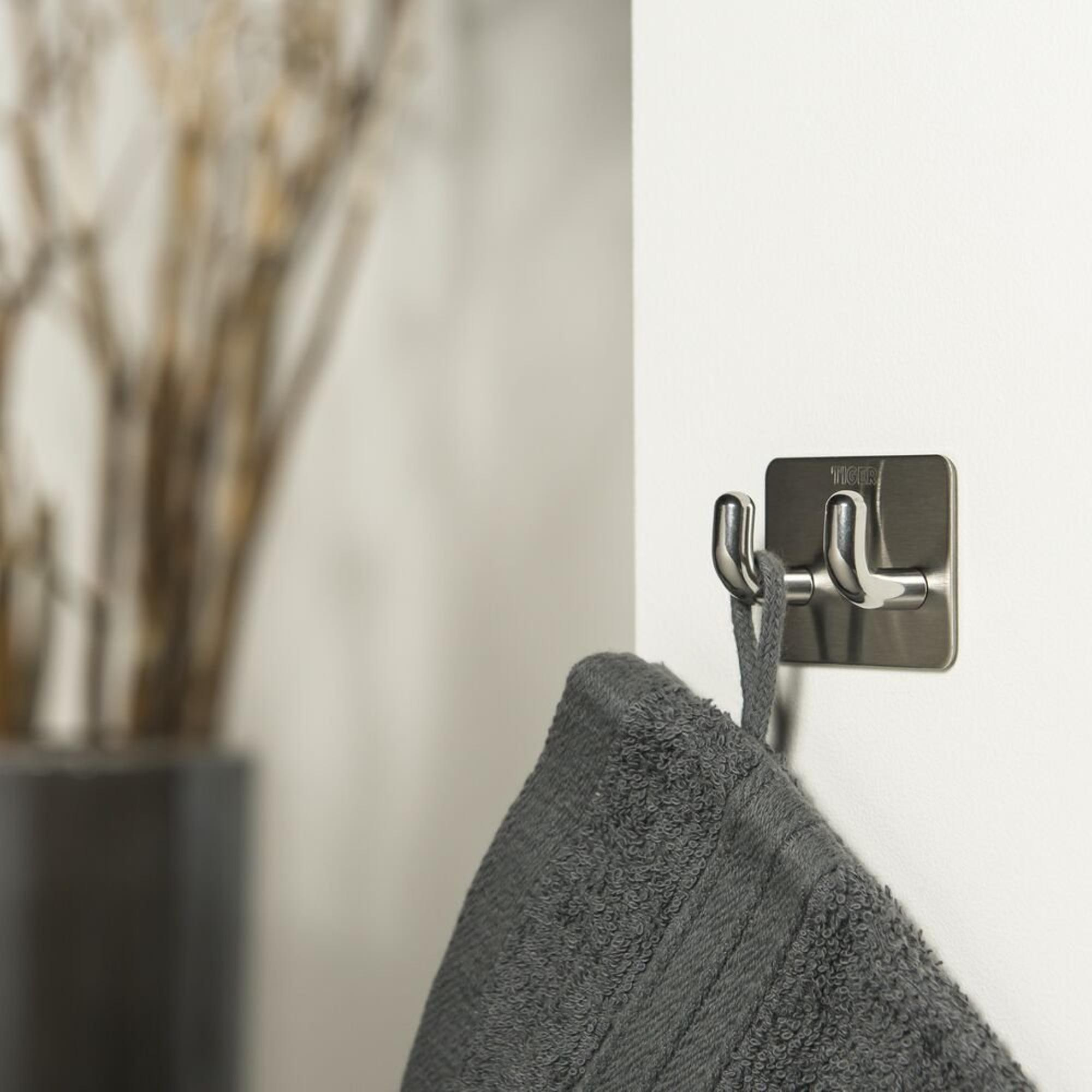 Grâce à la bande autocollante robuste, vous fixez facilement ce crochet double sur des surfaces lisses et solides telles que carrelage, verre ou surfaces laquées. Il n’est pas nécessaire de percer, donc pas de poussière, pas de bruit et surtout aucun risque d’endommager le carrelage ou les conduites. Idéal si vous disposez de peu d’outils ou si vous vivez dans une maison en location où l’on préfère éviter les trous dans les murs. Le montage se fait en quelques étapes : dégraisser, positionner, presser et c’est prêt. De plus, la technique de collage fiable permet au crochet de supporter jusqu’à environ 1 kg, largement suffisant pour des serviettes, gants de toilette ou un torchon de cuisine.