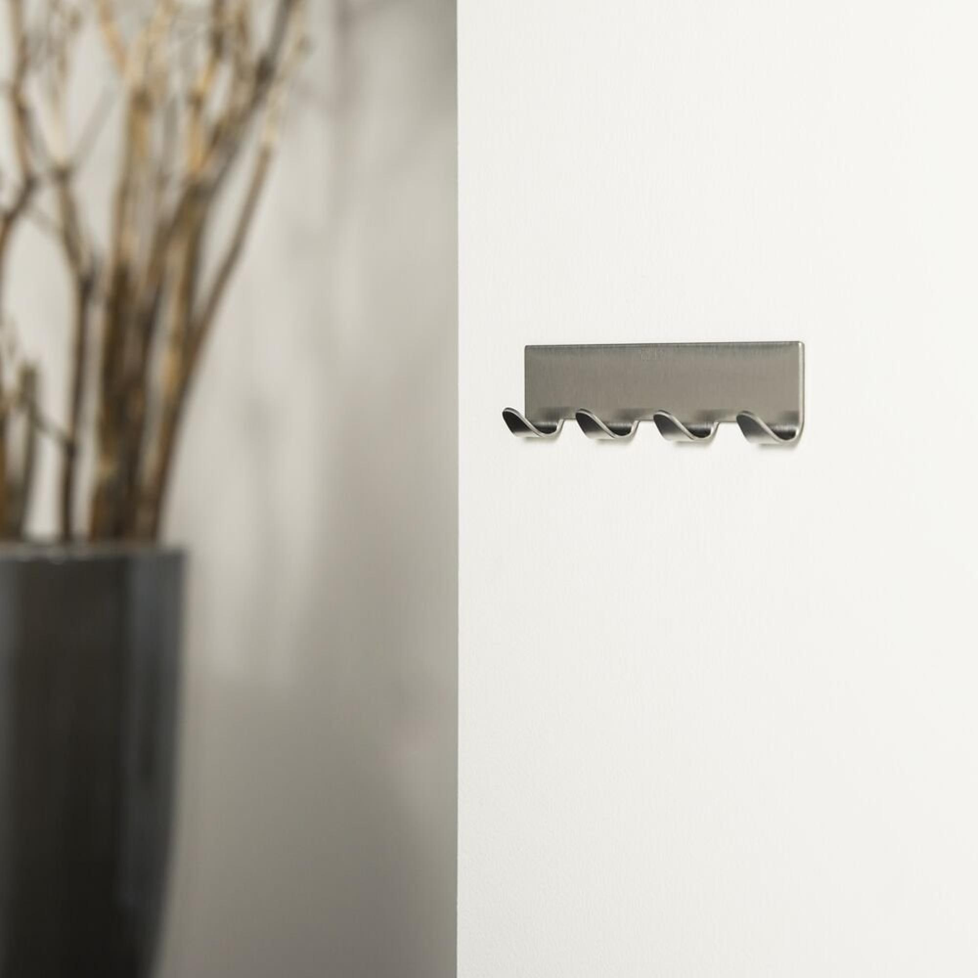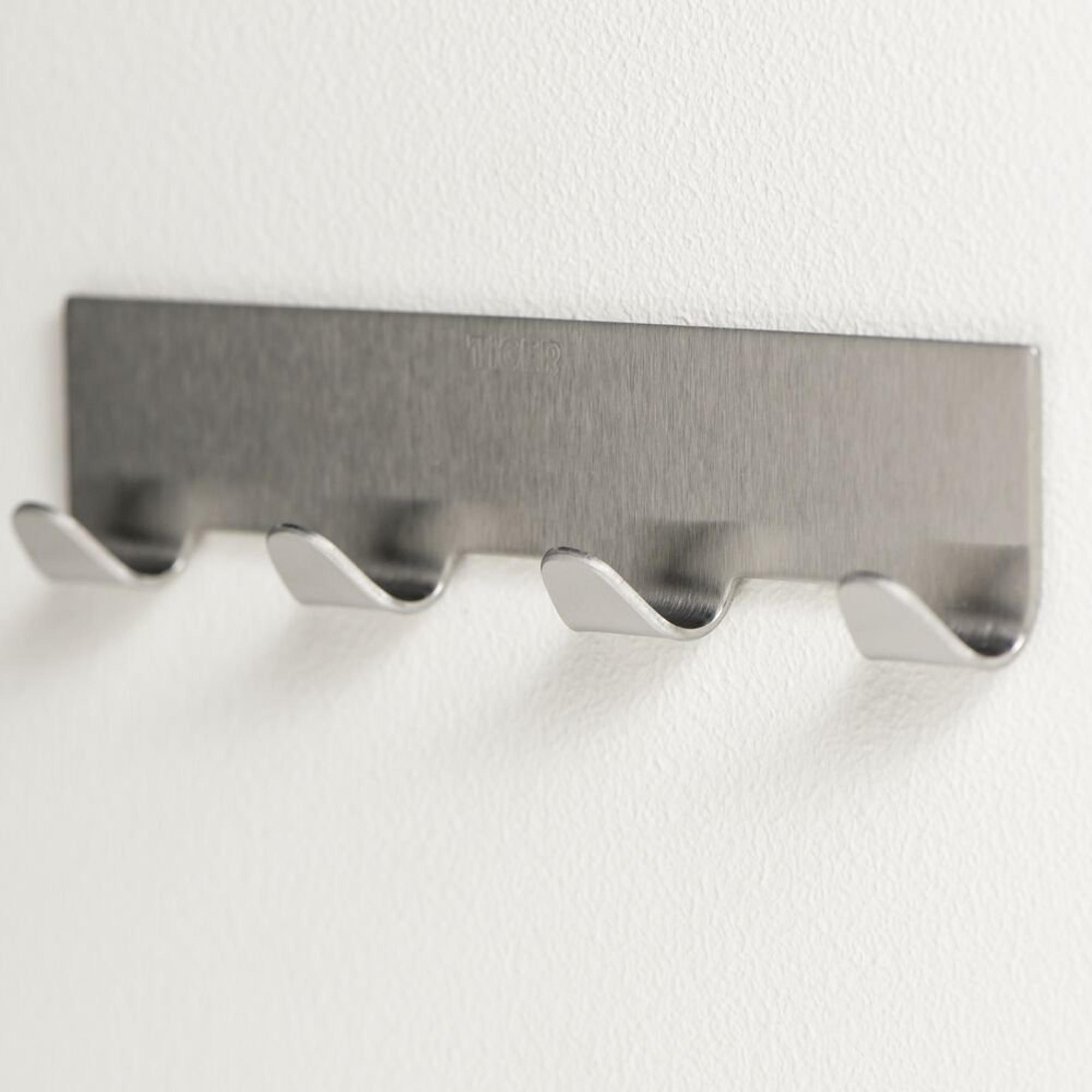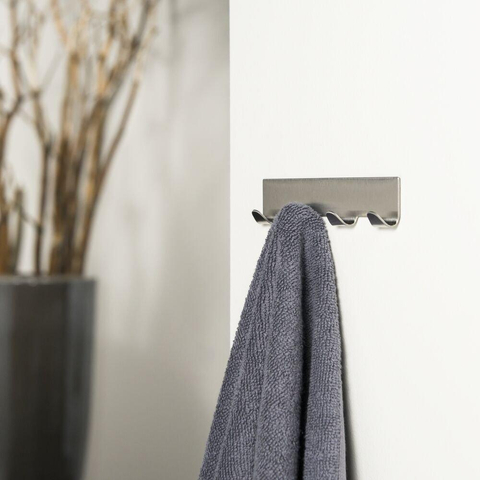 Avec ses dimensions modestes de 12,6x3x1,6 cm, ce porte-crochets offre une solution pratique pour les endroits où des patères murales classiques ou une grande barre porte-serviettes seraient trop imposantes. Les plusieurs crochets côte à côte offrent suffisamment de place pour des serviettes, serviettes invité, torchons ou des accessoires tels qu’une fleur de douche ou une éponge. Vous exploitez ainsi au mieux l’espace inutilisé sur le mur ou sur le côté d’un meuble, tout en gardant la salle de bains ou la cuisine claire et ordonnée. Son design épuré permet en outre de le combiner facilement avec d’autres accessoires de salle de bains en acier inoxydable, afin de créer une apparence uniforme.