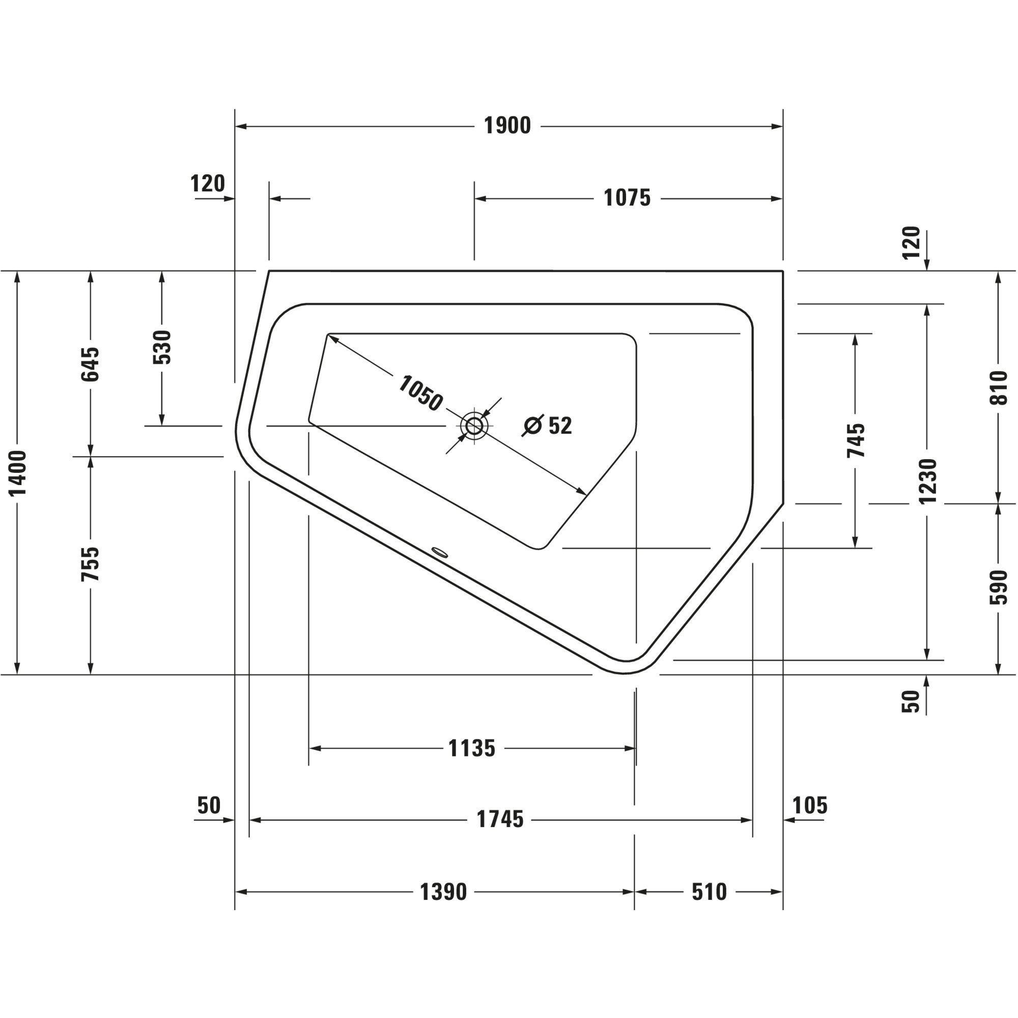 Duravit Paiova baignoire en matière plastique acrylique pentagonale pour angle droit 190x140x58cm avec tablier moulé et châssis blanc