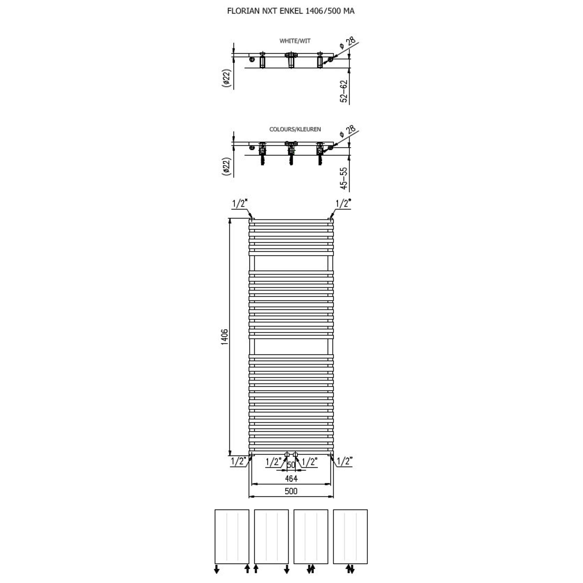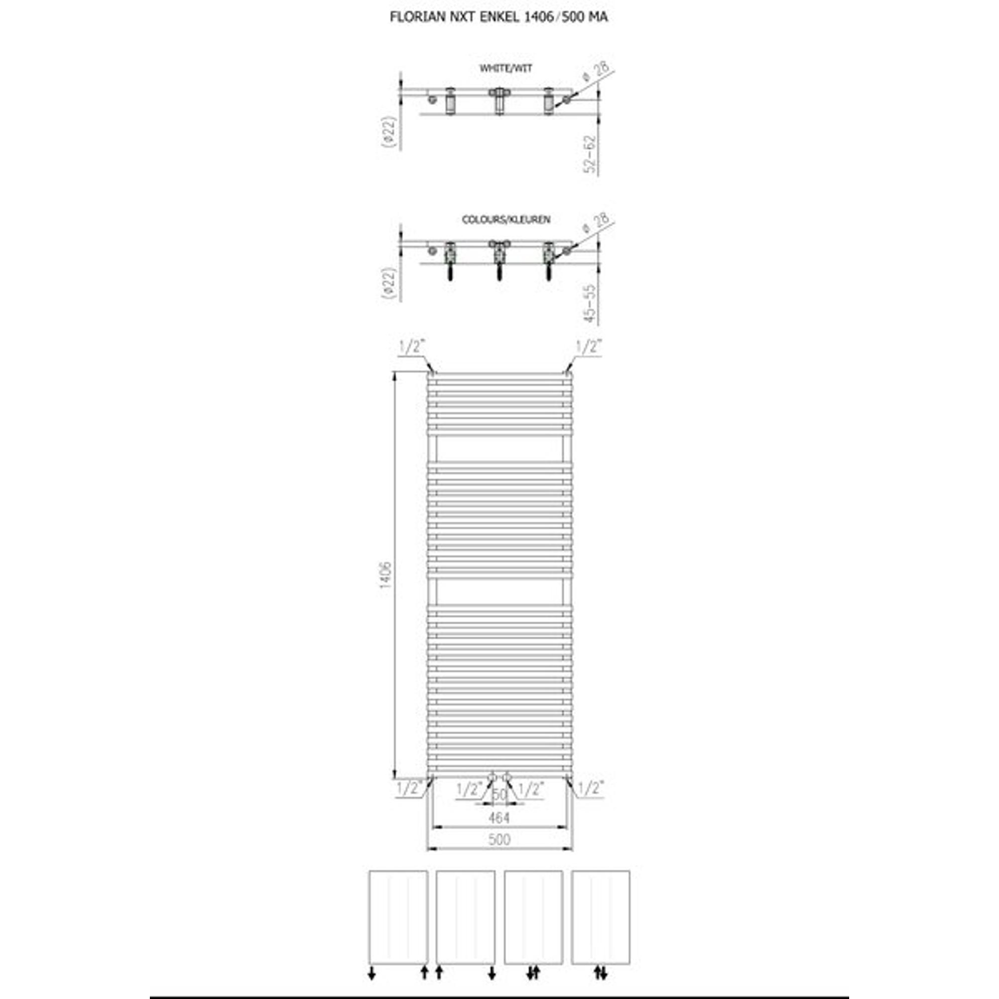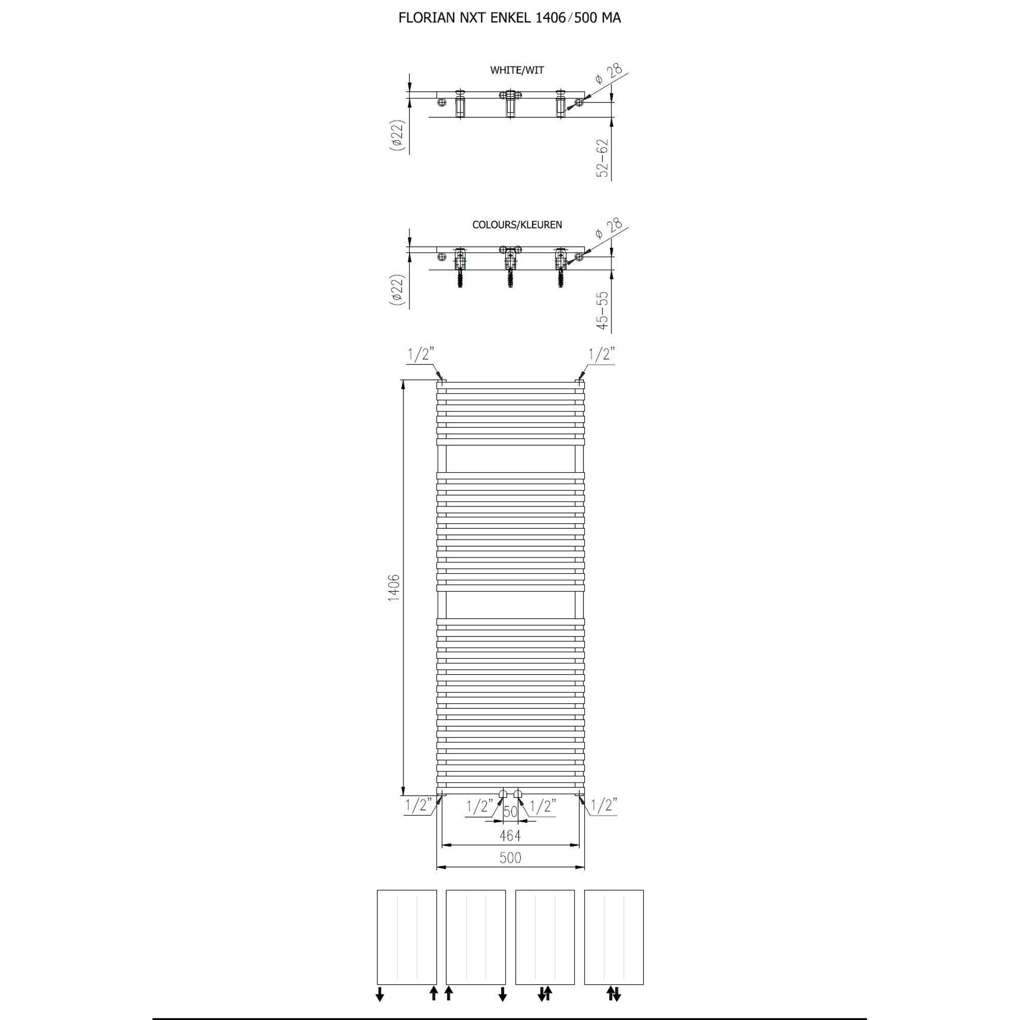 Polyvalent classique. Le Florian NXT est un ami populaire de tous. Disponible en version simple et double, dans différentes tailles et 12 couleurs. Et avec des porte-serviettes, anneaux ou crochets assortis. Il existe également un élément chauffant qui vous permet d'utiliser le NXT comme radiateur électrique.