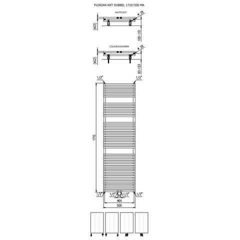 Avec une puissance de 1161 watts, ce radiateur offre largement assez de chaleur pour des salles de bains de taille moyenne et d’autres pièces où le confort est primordial. La version double assure une surface de chauffe supplémentaire, de sorte que la pièce atteint rapidement la bonne température et reste agréable, même les jours les plus froids. Grâce à sa forme horizontale de 171 x 50 cm, vous pouvez le placer parfaitement le long d’une baignoire ou sous une fenêtre, sans qu’il n’occupe trop d’espace. Le raccordement central rend l’installation claire et soignée, ce qui est non seulement esthétique, mais aussi pratique lorsque vous voulez raccorder proprement une installation de conduites existante.