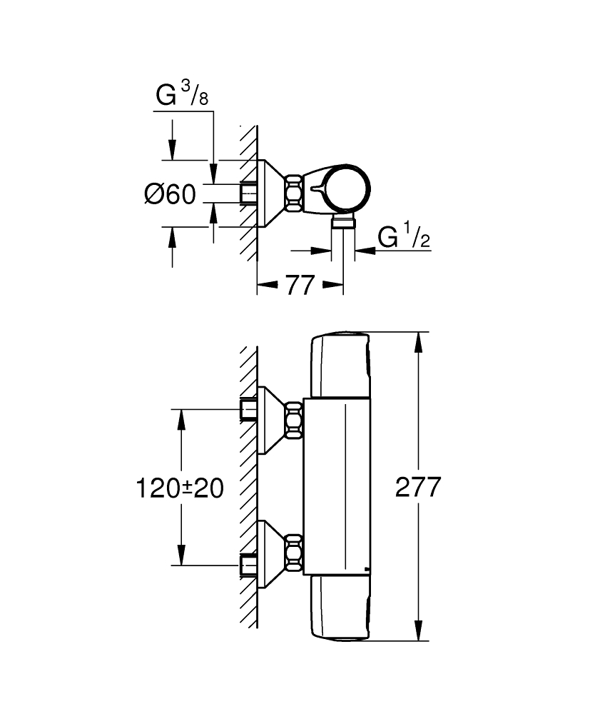 GROHE Precision Trend New Mitigeur thermostatique douche entraxe = 12cm chrome