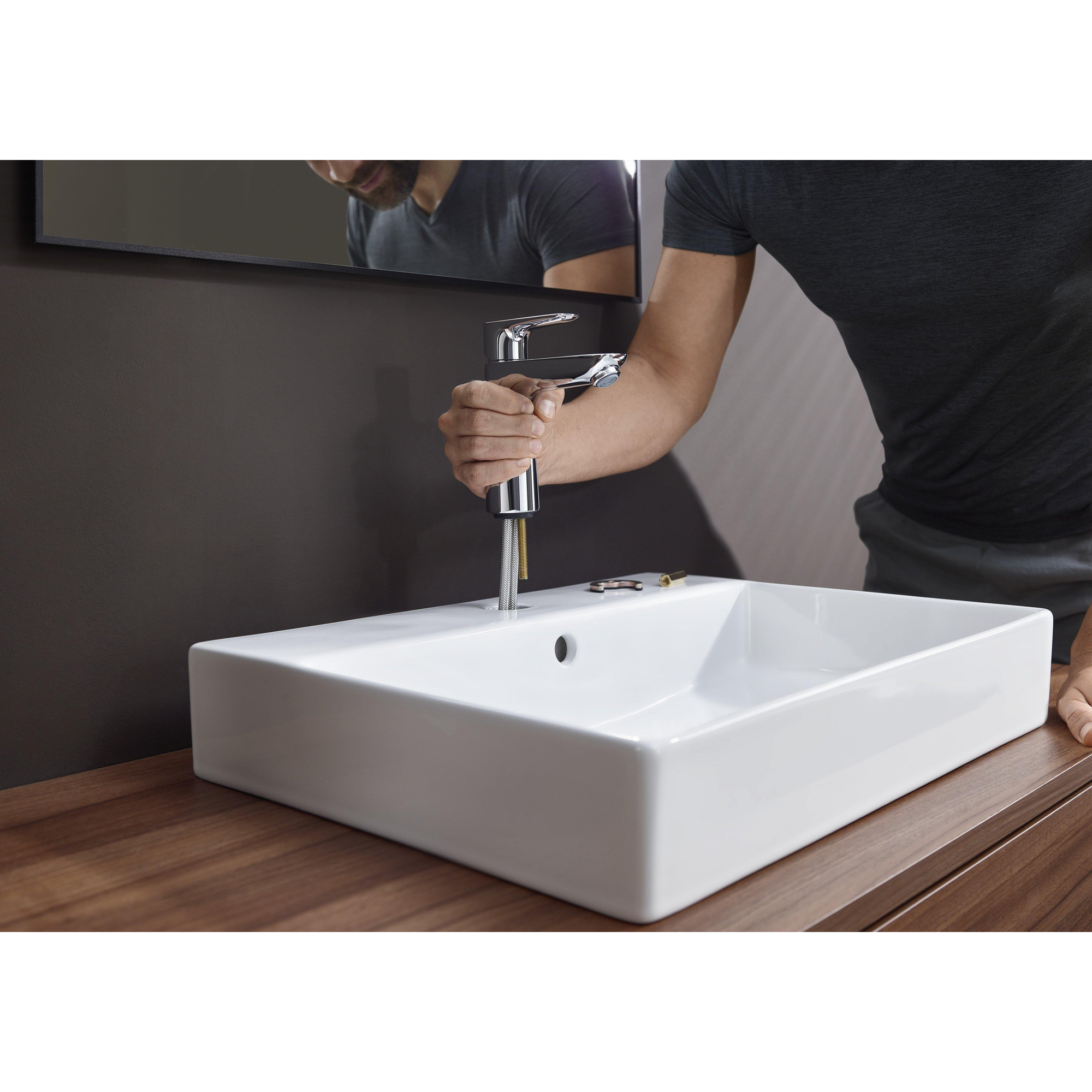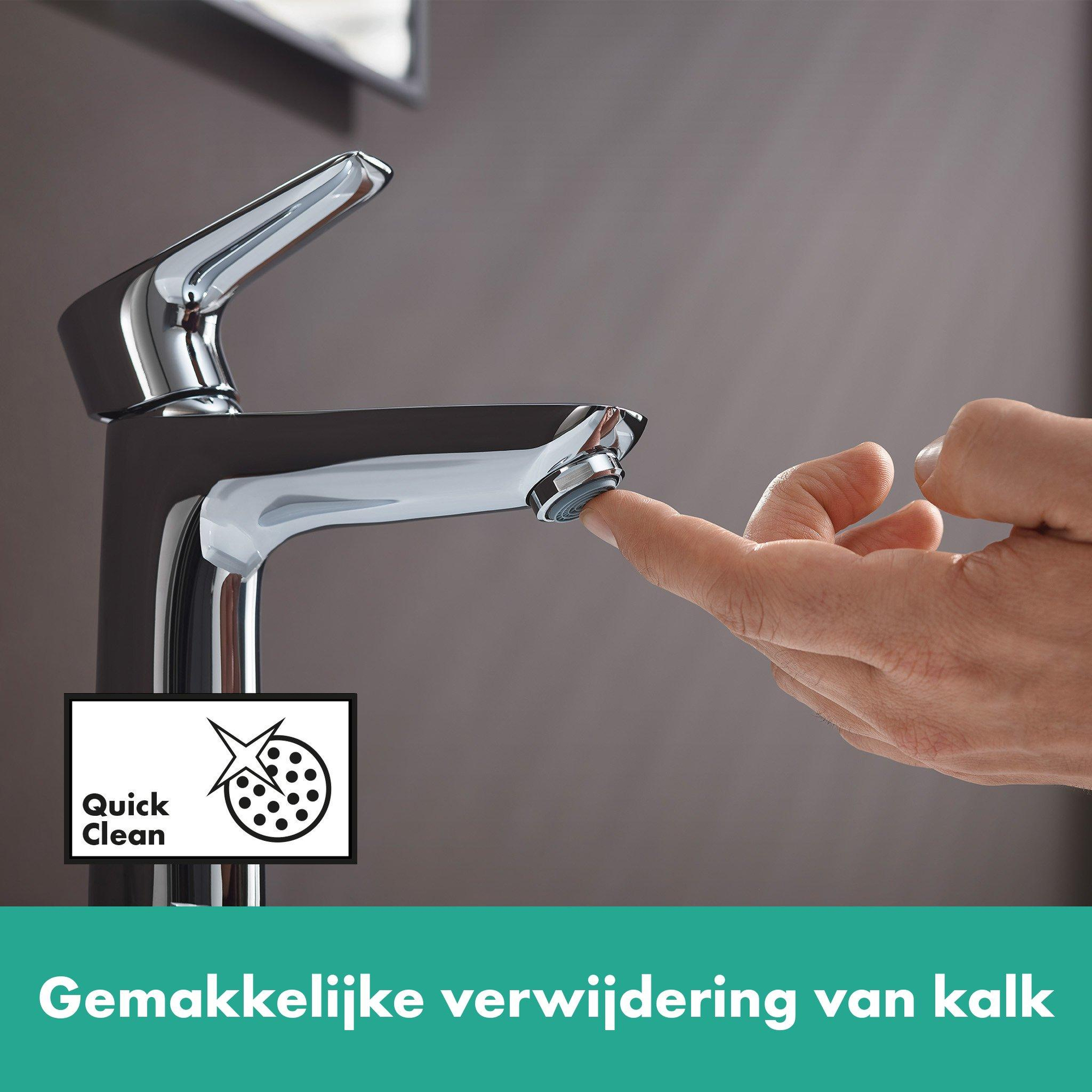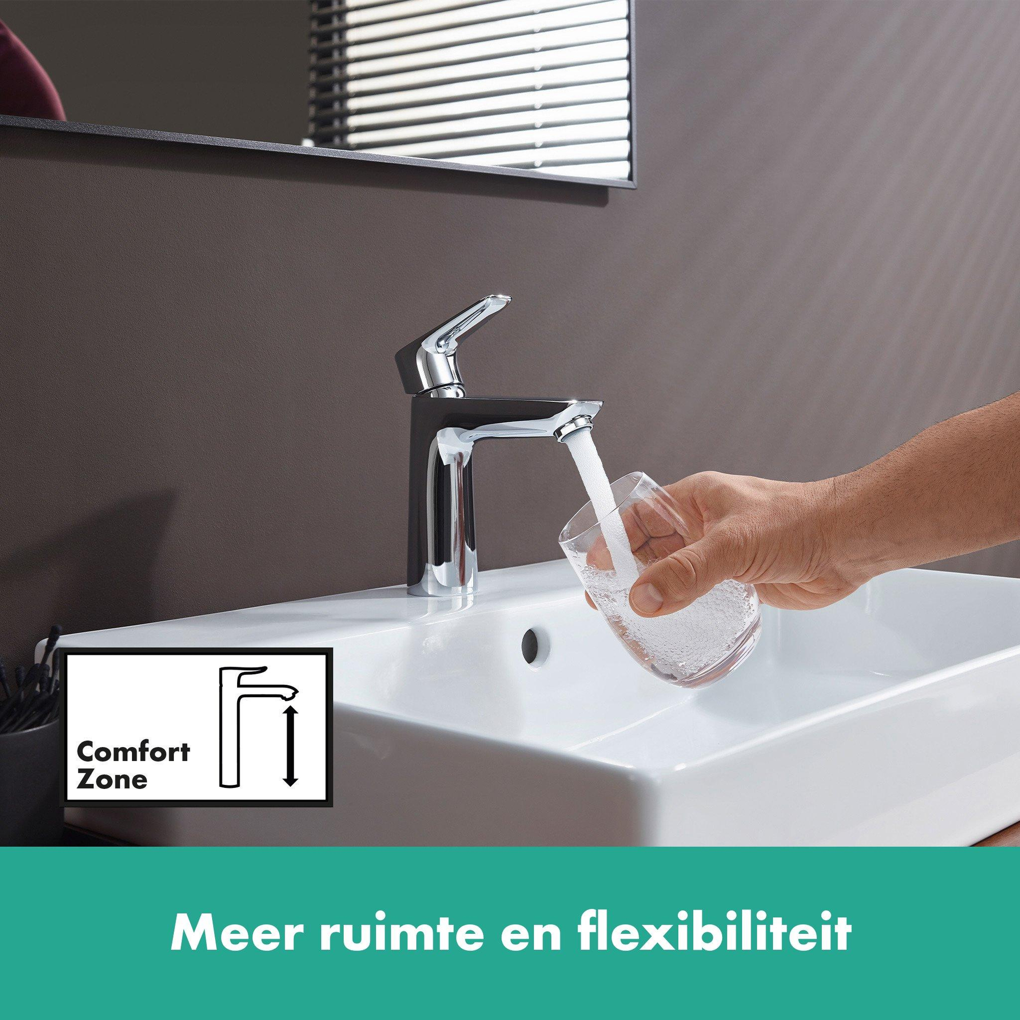 Avec une ComfortZone de 110 mm, ce robinet offre une liberté de mouvement supplémentaire au lavabo, ce qui facilite considérablement vos gestes quotidiens. La technologie EcoSmart intégrée limite la consommation d'eau à un maximum de 5 litres par minute, ce qui vous permet non seulement d'économiser des coûts, mais aussi de contribuer à un mode de vie plus durable. Le vidage pop-up fourni est facile à manipuler grâce à la tige de tirage pratique, rendant l'utilisation encore plus confortable. De plus, le limiteur de température assure une sécurité supplémentaire, pour que vous ne receviez jamais d'eau trop chaude.