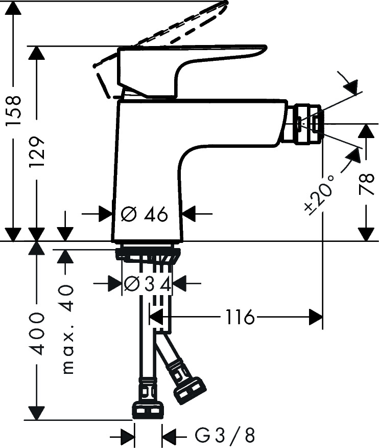 Hansgrohe Talis E Robinet bidet 1 trou avec garniture à clapet chrome