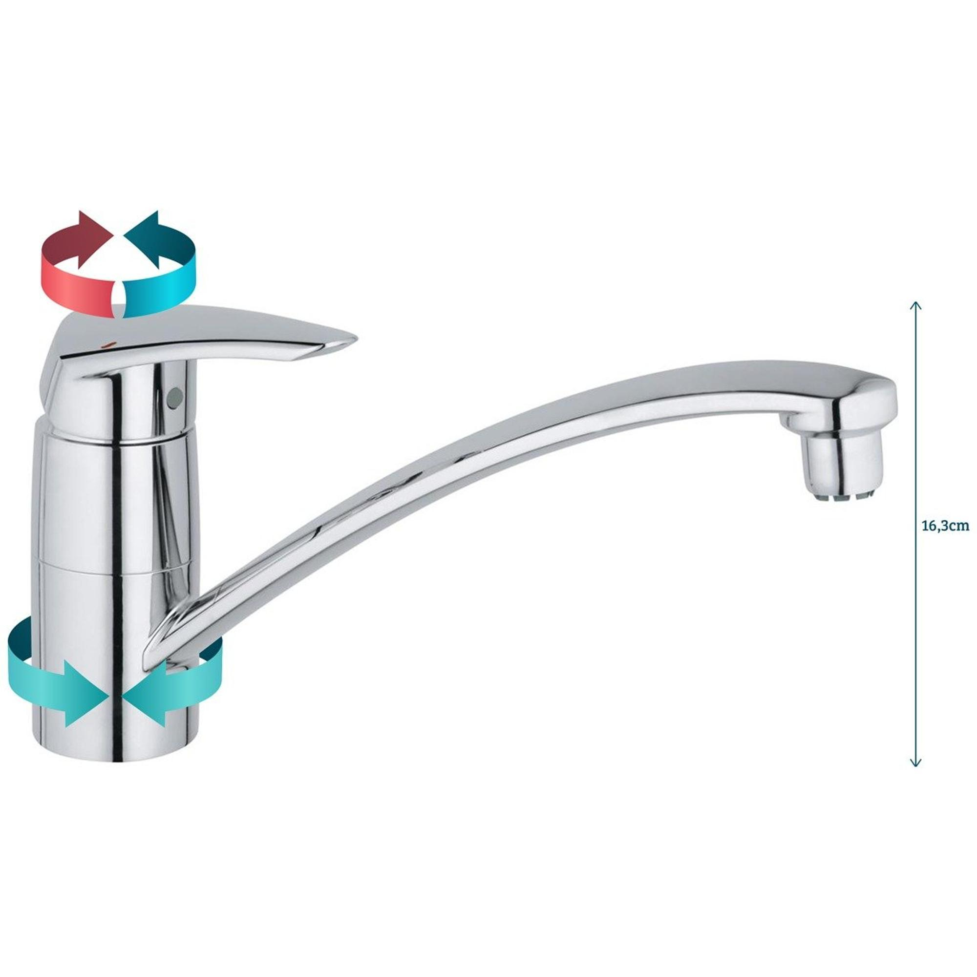 GROHE Eurodisc Mitigeur monocommande basse pression pour lavabo montage monotrou pour chauffe-eau chrome