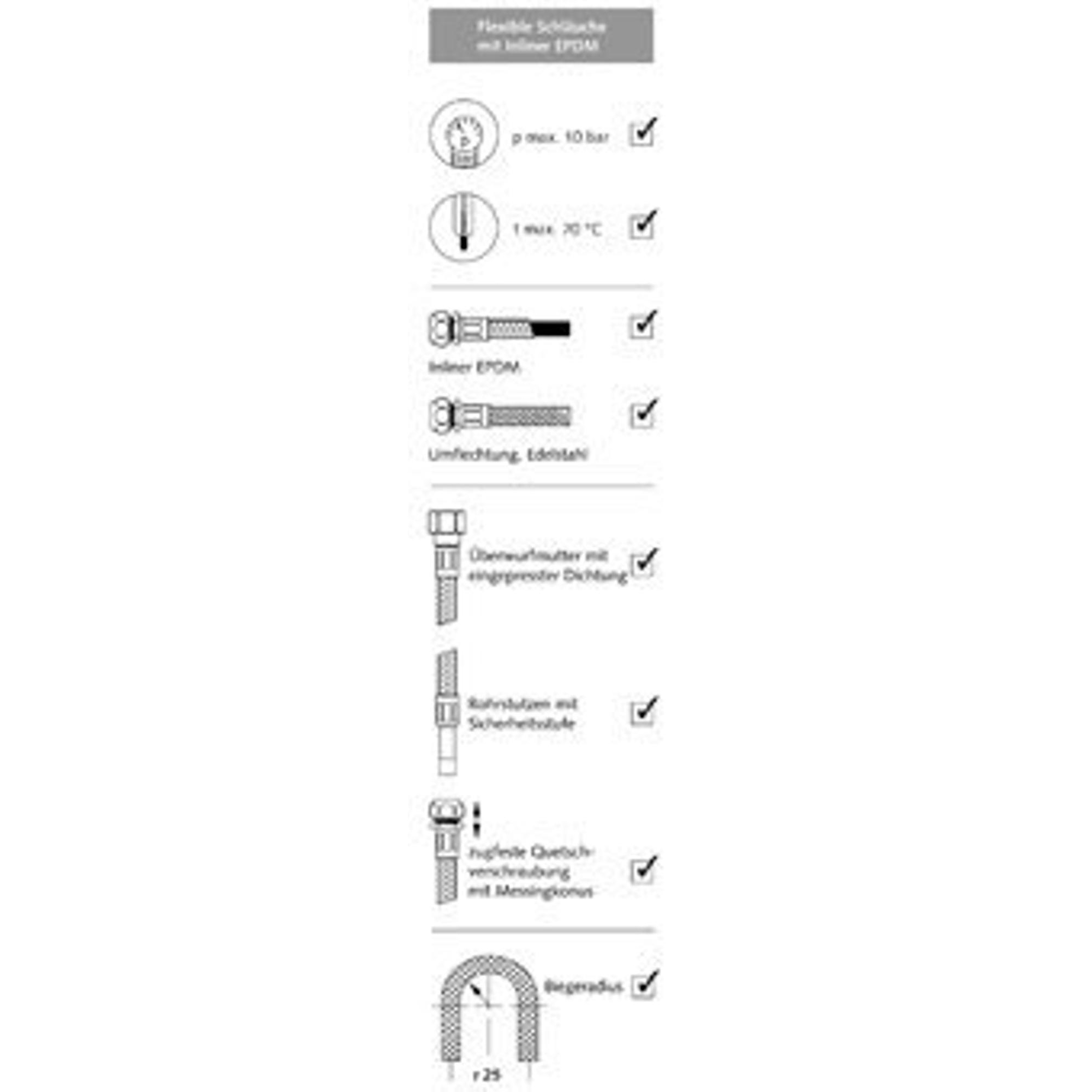 - Diamètre de flexible DN 8 avec tube 10 mm, adapté à de nombreuses applications sanitaires
