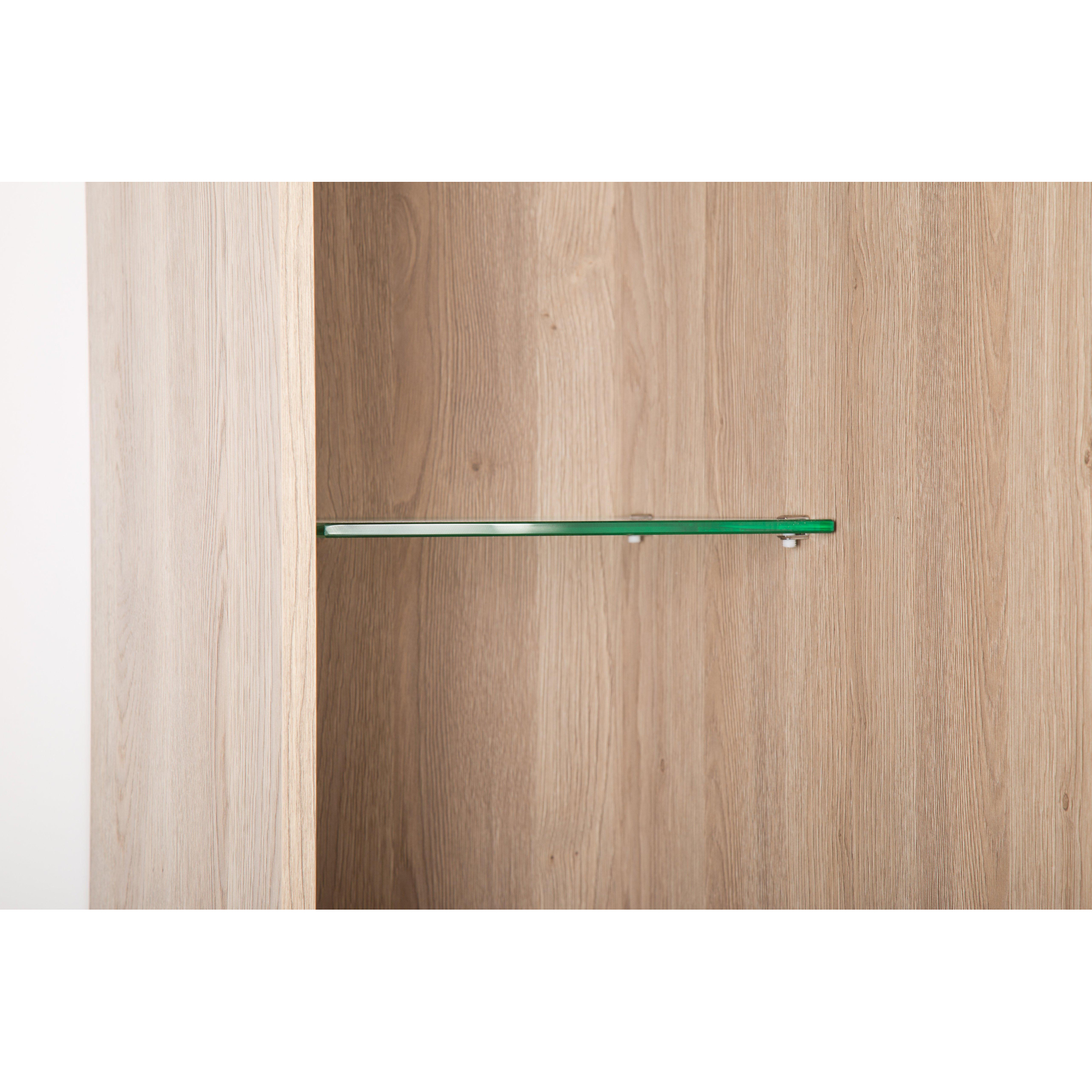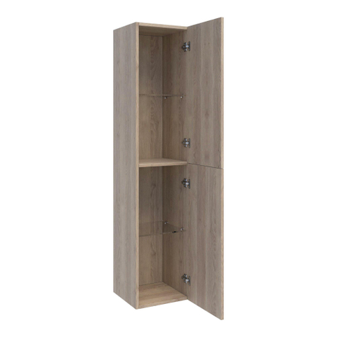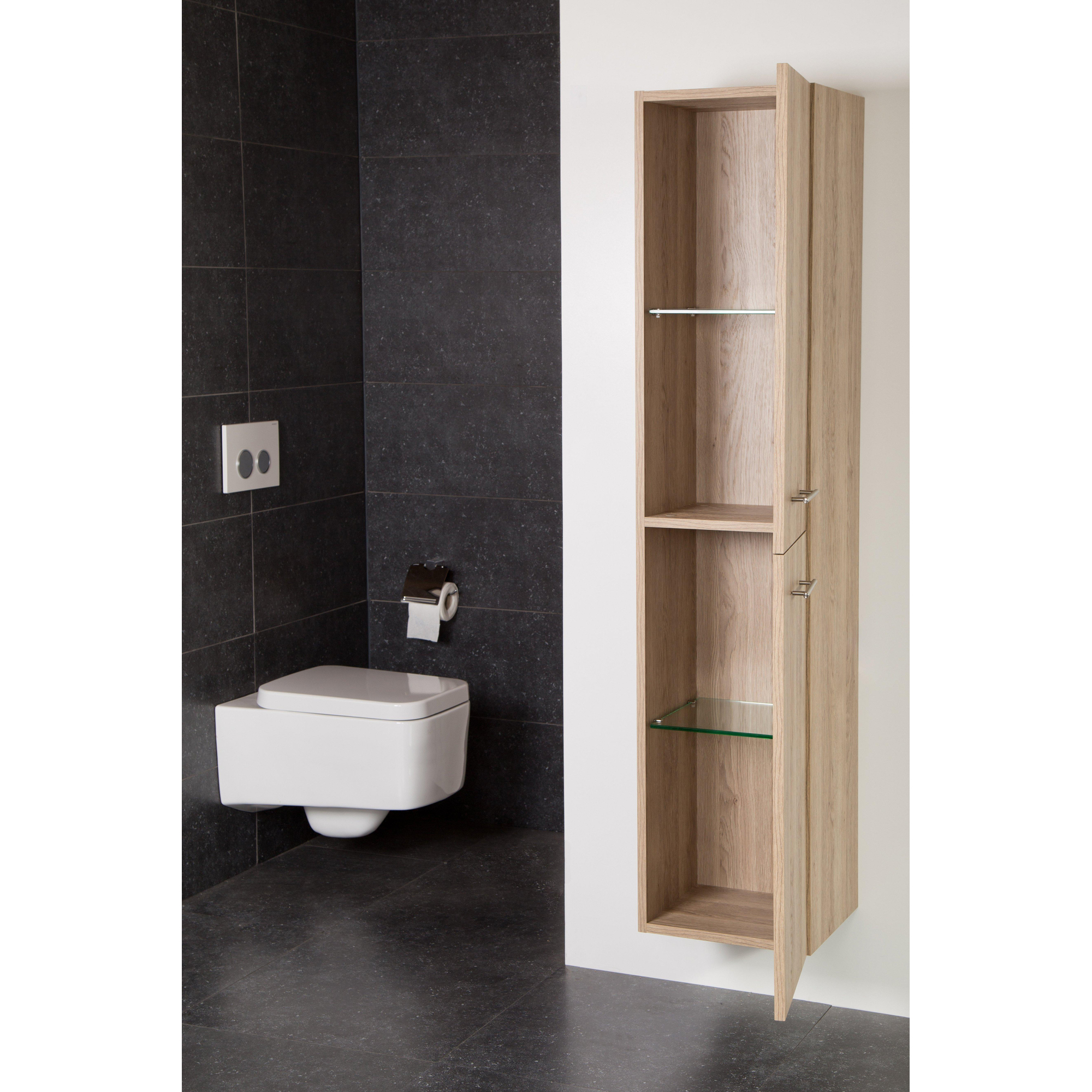 Cette armoire haute de salle de bains est idéale si vous êtes à la recherche d’un espace de rangement supplémentaire sans que votre salle de bains paraisse plus encombrée. Grâce à ses dimensions élancées, elle s’intègre parfaitement dans les petites salles de bains, les toilettes ou à côté d’un meuble de salle de bains existant, tout en offrant beaucoup de place pour vos affaires. La teinte bois chaleureuse donne immédiatement à votre intérieur une atmosphère conviviale et naturelle, facile à combiner aussi bien avec des salles de bains modernes et épurées qu’avec un style plus scandinave ou hôtel chic. Les portes peuvent être montées ouvrant à gauche ou à droite, ce qui vous permet de placer l’armoire de manière flexible, même dans les coins difficiles ou à côté d’une porte. Vous créez ainsi une salle de bains calme et ordonnée où les serviettes, les produits de soin et les produits d’entretien restent bien dissimulés, mais toujours à portée de main.
