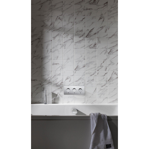 Ce robinet de baignoire Crosswater MPRO en chrome est installé horizontalement et dispose de trois boutons : avec l'un, vous alternez entre la douchette à main et la douche principale, avec l'autre vous réglez la bonne température et avec le dernier vous allumez ou éteignez le robinet. Vous pouvez également opter pour un modèle vertical, un thermostat avec deux boutons ou cette version dans une autre couleur, comme le laiton et le noir mat. Il est également possible de choisir un ensemble complet, où la combinaison de remplissage de baignoire et la douchette à main sont déjà incluses.