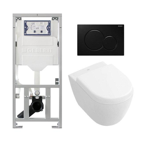 Toilet Pack Villeroy Boch Subway 2.0 compact DirectFlush - réservoir Geberit - plaque de déclenchement noire - fermeture douce - démontage rapide - blanc