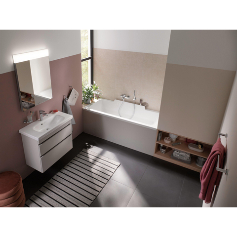 Grâce à sa forme rectangulaire épurée et à sa couleur blanche brillante, ce lavabo se combine facilement avec une grande variété de meubles de salle de bains et de carrelages. Vous pouvez opter pour un meuble suspendu pour un look moderne et aérien, ou au contraire pour une colonne ou un cache-siphon si vous souhaitez créer une apparence plus classique. Le modèle est adapté au montage sur meuble, sur pieds, avec cache-siphon et avec colonne, ce qui vous offre une grande liberté dans l’aménagement de votre salle de bains. Le trou de robinet standard et la préparation pour un distributeur de savon apportent une flexibilité supplémentaire dans le choix de votre robinet et de vos accessoires. Vous composez ainsi facilement un ensemble de salle de bains qui correspond parfaitement à vos souhaits en termes de style et de fonctionnalité.