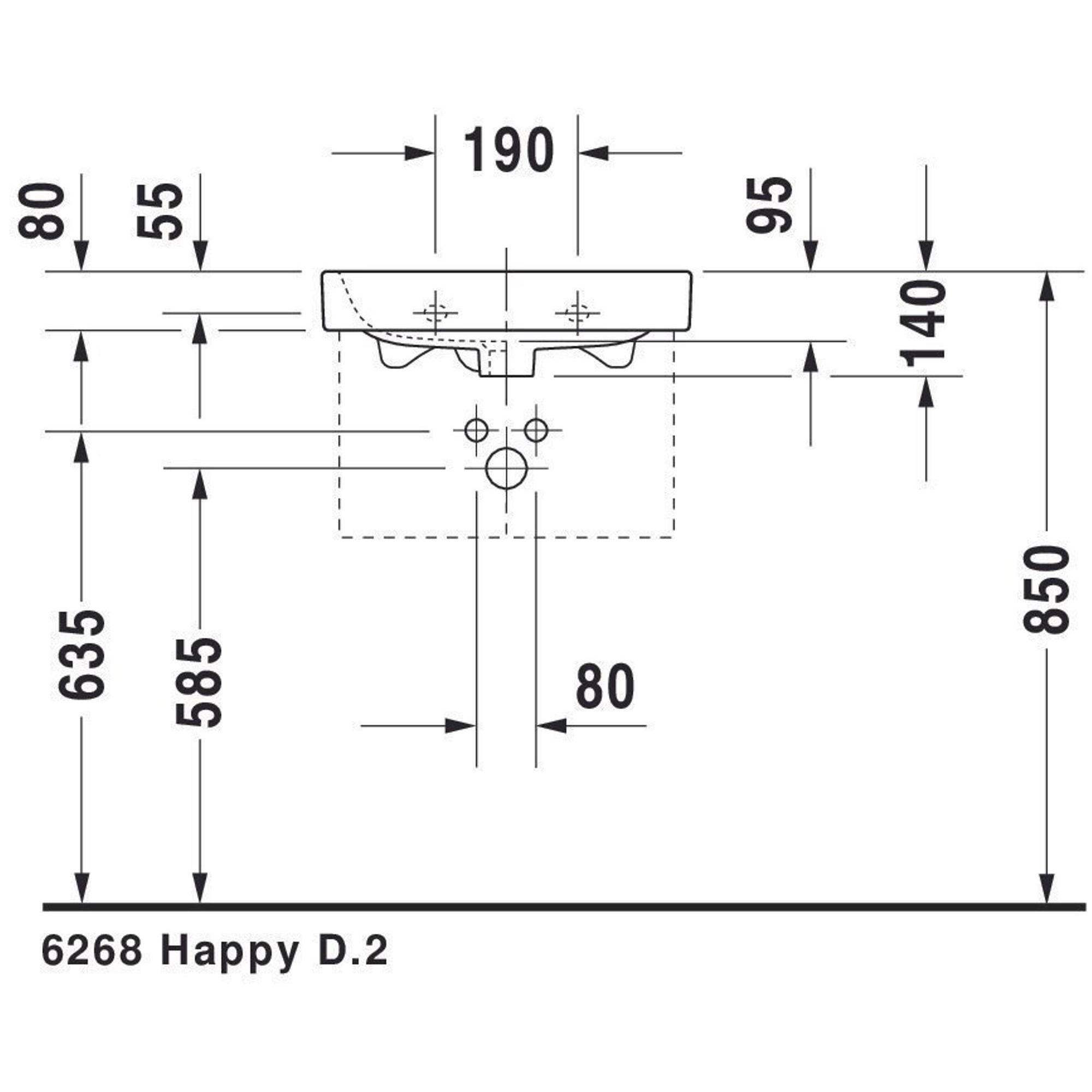 Duravit HappyD 2 lavabo pour meuble avec trop-plein avec trou de robinetterie 50x36cm blanc
