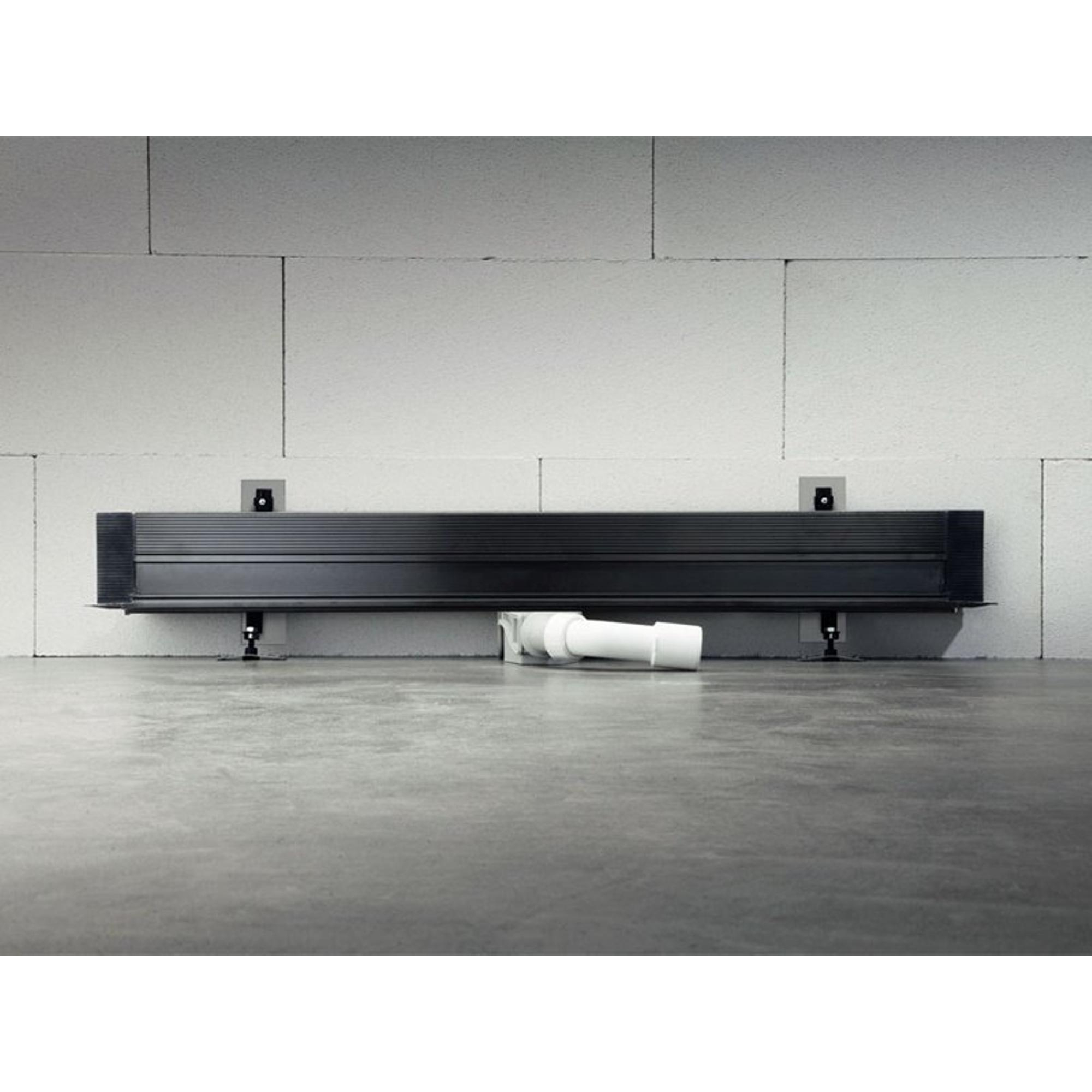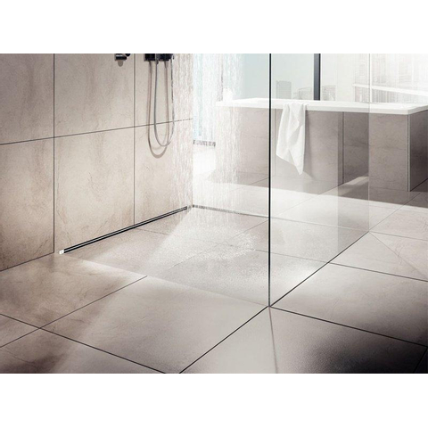La version raccourcissable en continu de 300 à 1200 mm vous offre une liberté maximale pour la finition du sol de douche. Vous coupez le caniveau simplement à la bonne longueur, afin qu’il s’adapte parfaitement au calepinage et à la largeur de votre douche. Comme l’évacuation est positionnée contre le mur, le sol paraît calme et spacieux et vous n’avez à créer la pente que dans une seule direction. Cela rend le travail du carreleur plus clair et réduit le risque d’erreurs dans la formation de la pente. Surtout dans les douches à l’italienne épurées, où de grands carreaux ou un motif de carrelage continu sont souhaités, ce positionnement mural est un grand avantage. Vous combinez ainsi design, facilité pratique et évacuation fiable de l’eau en une seule solution.