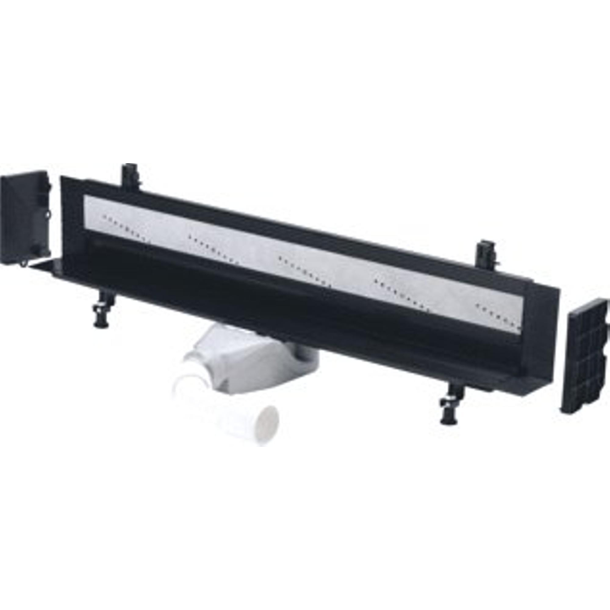 Comme il s’agit ici d’un modèle de rénovation avec une profondeur d’encastrement réduite d’environ 70 à 100 mm, ce caniveau de douche convient particulièrement aux situations où la hauteur de construction disponible est limitée. Pensez aux dalles en béton existantes, aux appartements ou aux salles de bains où vous ne pouvez plus réaliser de réservations profondes. La profondeur d’encastrement dans le mur à partir de 25 mm permet de dissimuler au maximum la technique dans la construction. Parallèlement, le siphon et le garde d’eau sont conçus de manière à ce que la capacité d’évacuation soit largement suffisante pour une utilisation normale de la douche. Il est toutefois important d’examiner au préalable, avec votre installateur ou conseiller, la structure du sol et le choix du carrelage ; vous évitez ainsi les mauvaises surprises et pouvez, si nécessaire, opter à temps pour des solutions telles que des formats de carreaux adaptés ou une résine époxy.