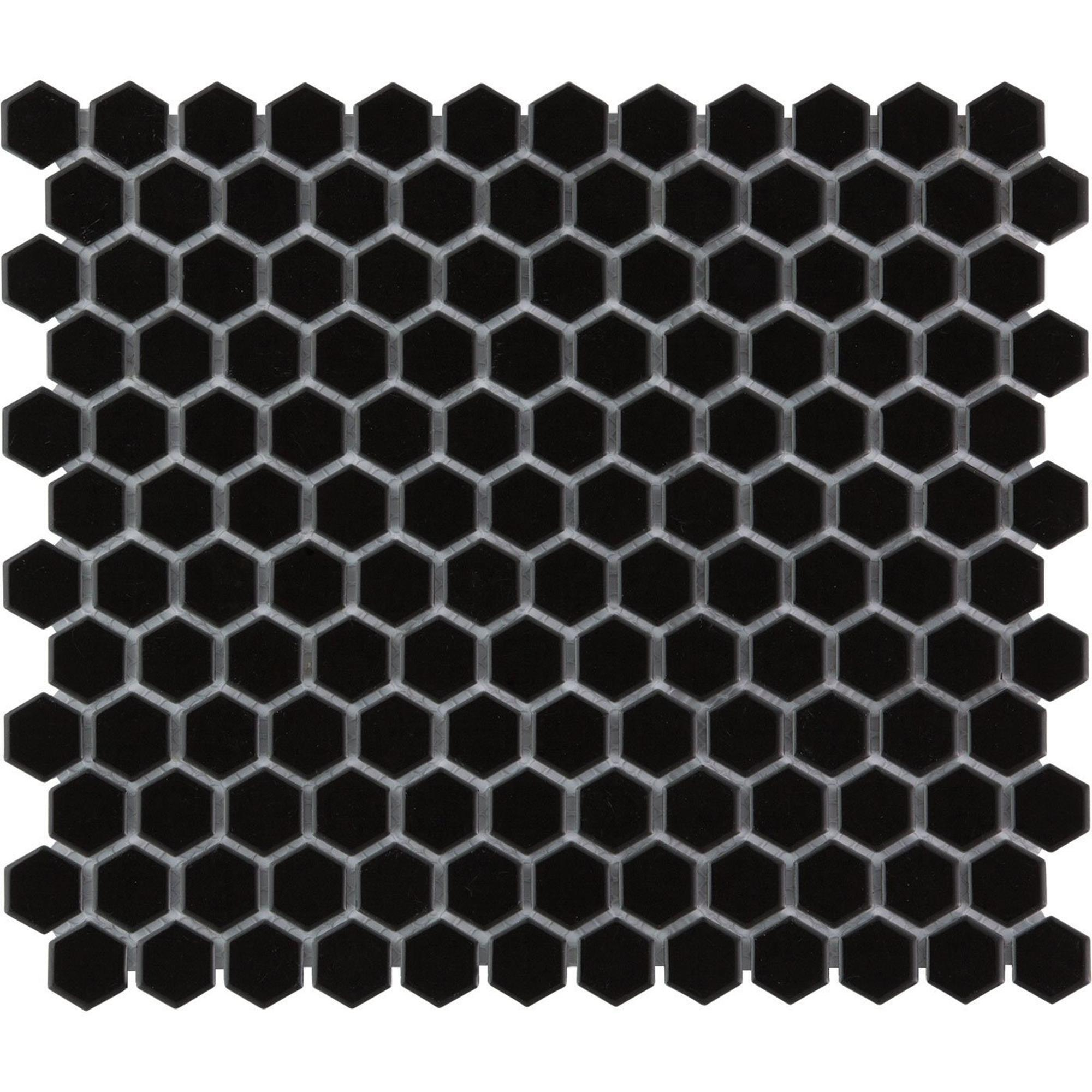 Découvrez la beauté du Mosaic Factory Barcelona carreau de mosaïque - 26x30cm - carrelage mural - Hexagone - Porcelaine Noir Brillant.