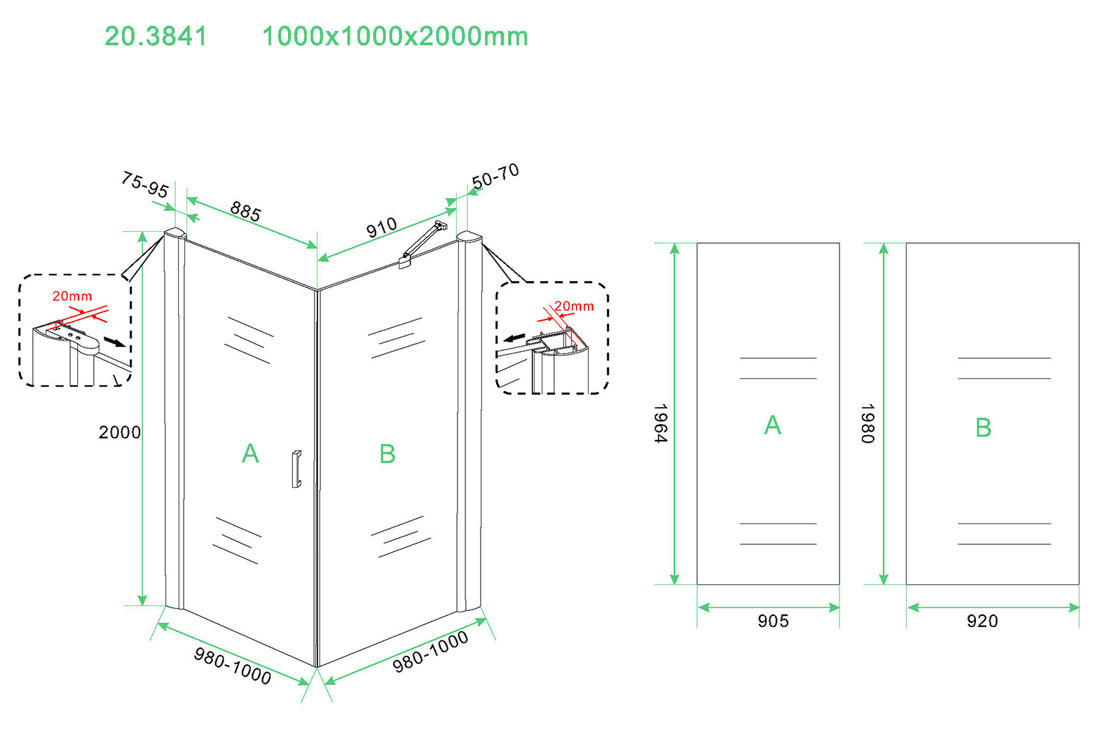 - Dimensions 1000 x 1000 x 2000 mm, adapté à diverses configurations de salle de bains