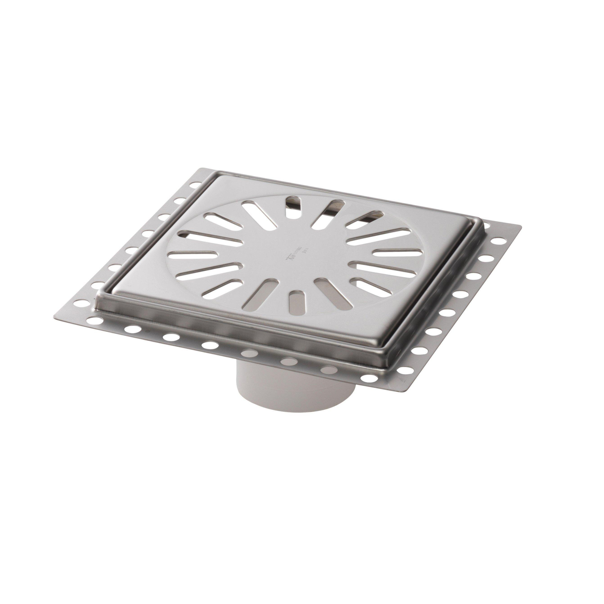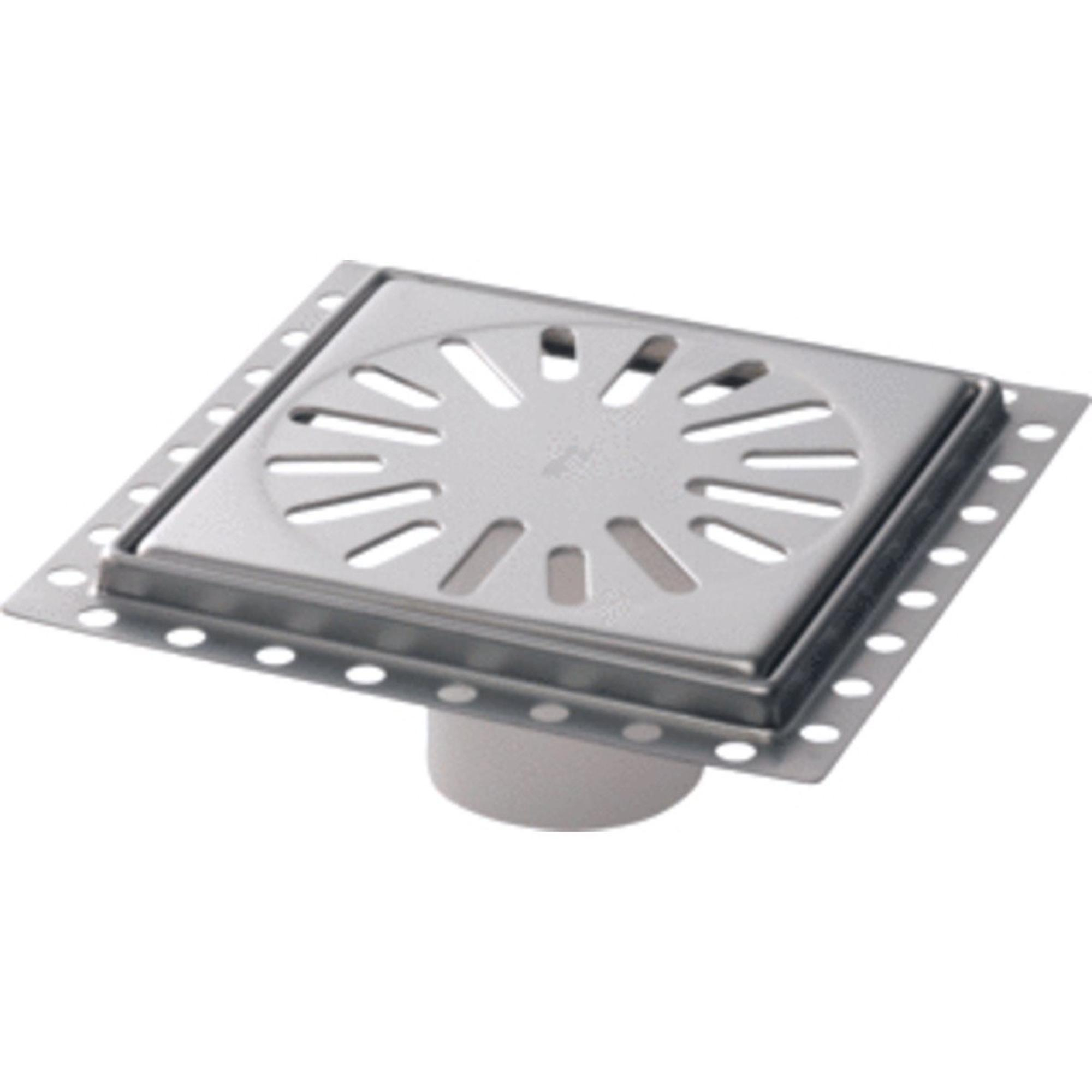 Aquaberg Siphon de rénovation en acier inoxydable avec grille en acier inoxydable incl. deux siphons anti-odeur 150x150mm hauteur d'encastrement 10mm