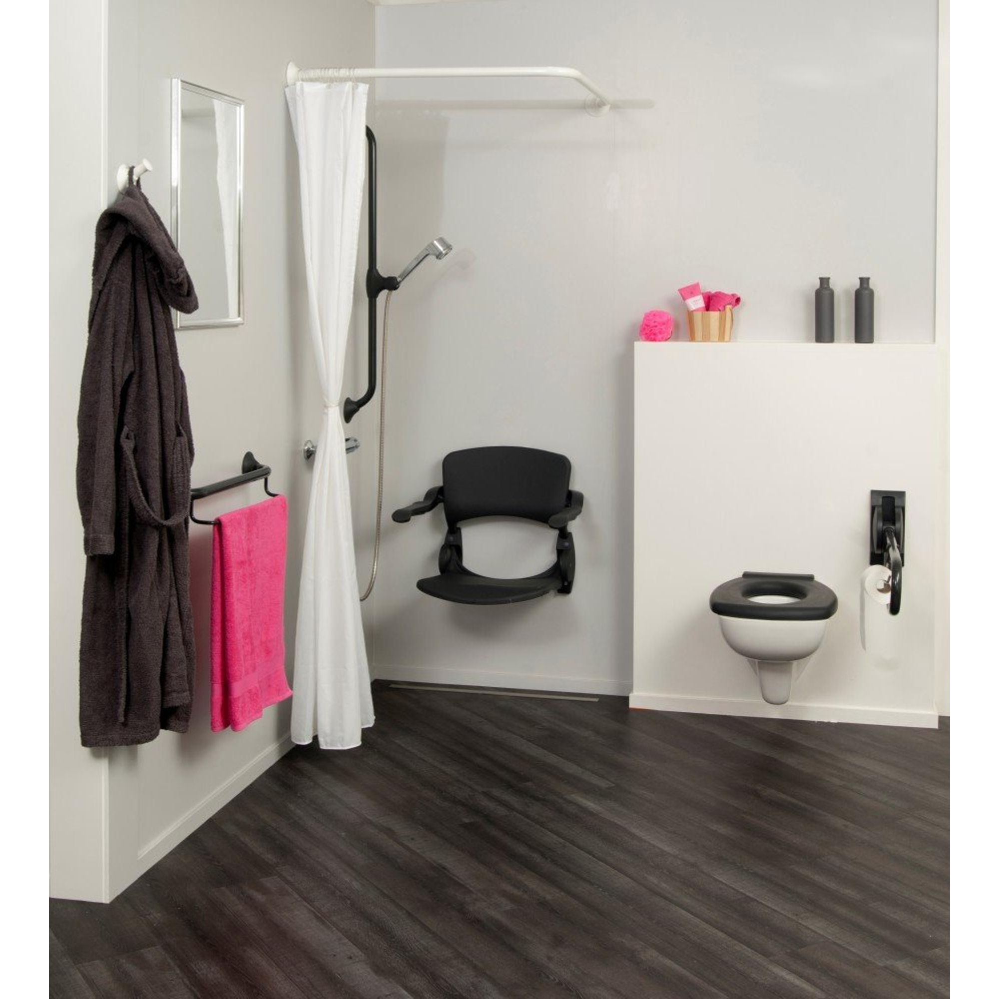 - Handicare siège de douche rabattable avec dossier et accoudoirs anthracite sûr offrant un soutien supplémentaire sous la douche