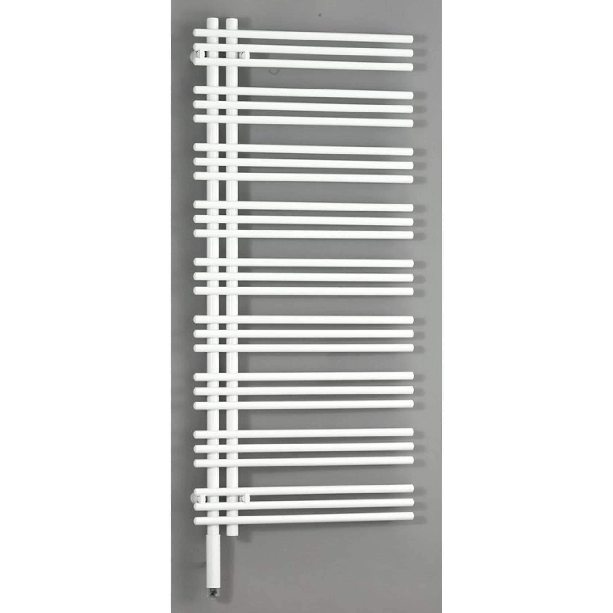 Le modèle élancé et haut offre suffisamment d’espace pour suspendre et sécher les serviettes, rendant l’utilisation quotidienne particulièrement confortable. Le radiateur est doté d’une finition blanche brillante (RAL 9016), qui s’harmonise non seulement avec presque tous les styles de salle de bains, mais est aussi facile à nettoyer. La fixation murale avec des supports robustes assure une installation sûre et stable. Grâce à la connexion inférieure, l’installation est également ordonnée et discrète, contribuant à une apparence soignée.Acier durable avec une apparence intemporelle