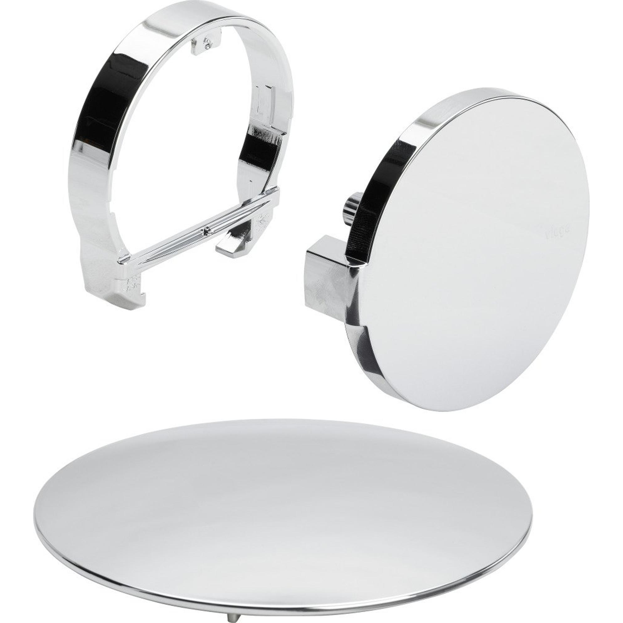 - Partie apparente complète avec rosace de bouton rotatif, rosace de trop-plein et capuchon de recouvrement en blanc