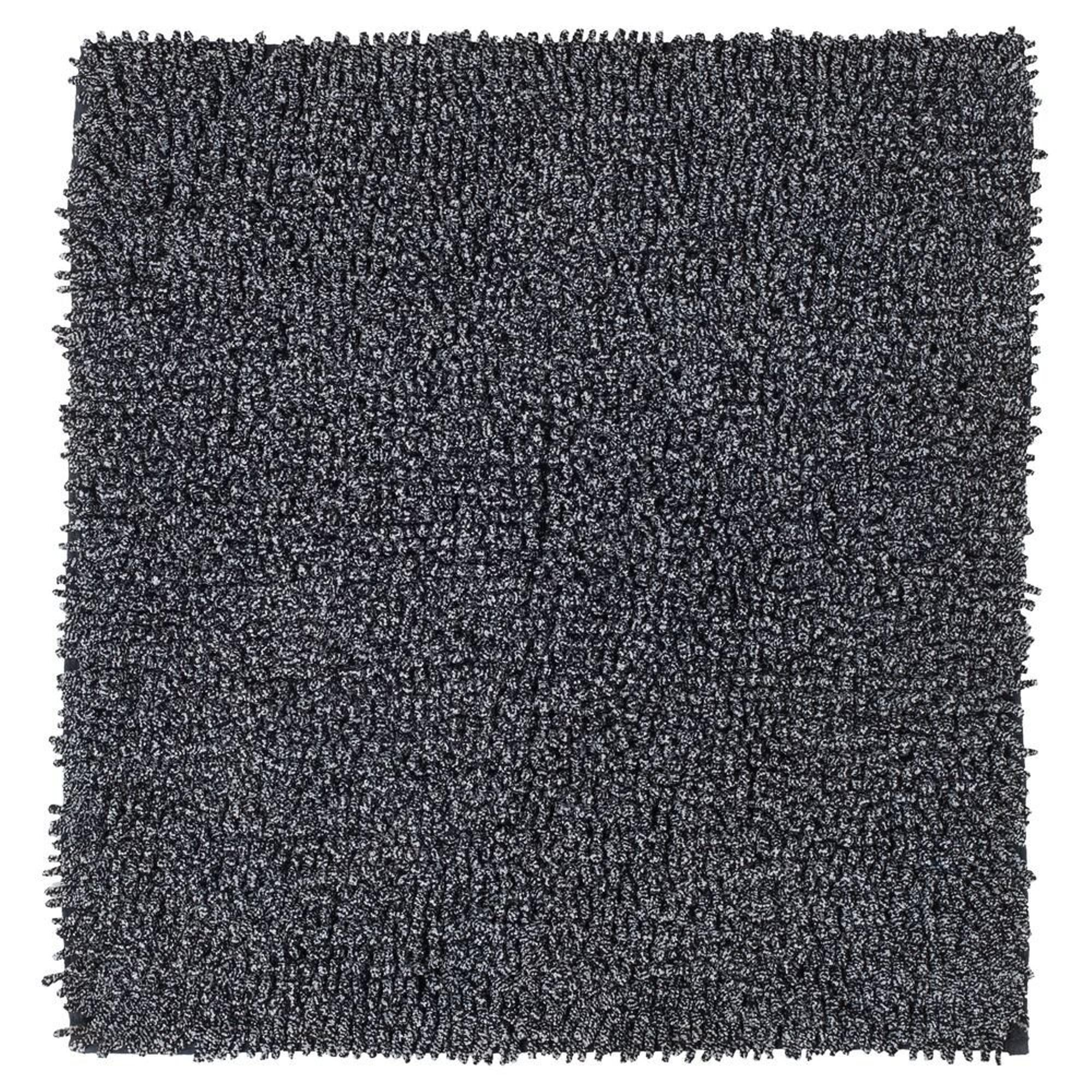 La combinaison de noir et de blanc dans un seul fil crée un effet subtilement chiné qui donne immédiatement de l'ambiance. Dans une salle de bains moderne, industrielle ou minimaliste, cette combinaison de couleurs est particulièrement mise en valeur, mais dans un espace plus classique elle forme également un contraste net avec des carreaux ou un sanitaire clairs. Comme le tapis est carré, il s'aligne parfaitement sur les lignes, par exemple d'un WC suspendu mural ou d'un coin douche compact. Vous ajoutez ainsi avec peu d'efforts une touche élégante qui rend votre salle de bains visuellement calme tout en restant personnelle.