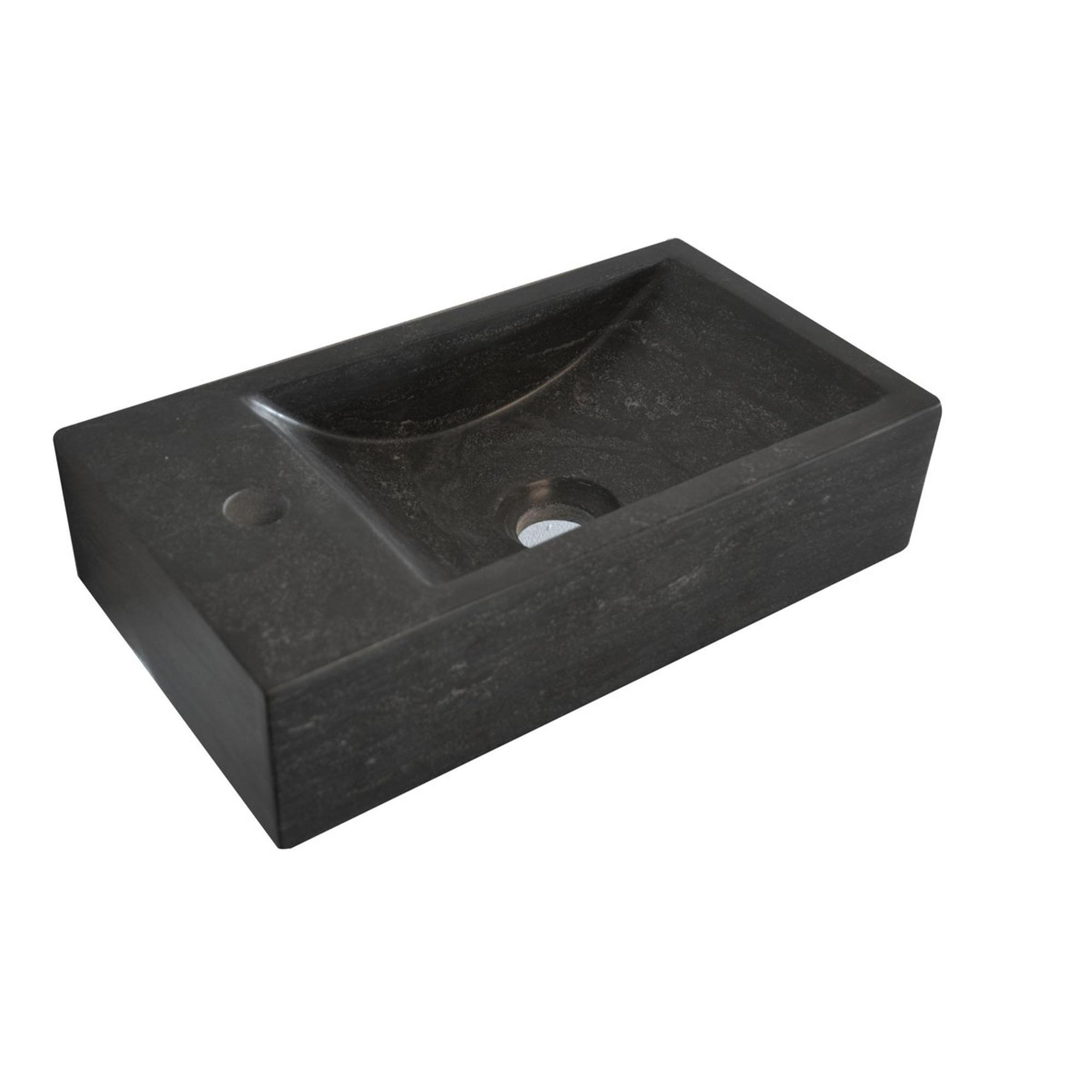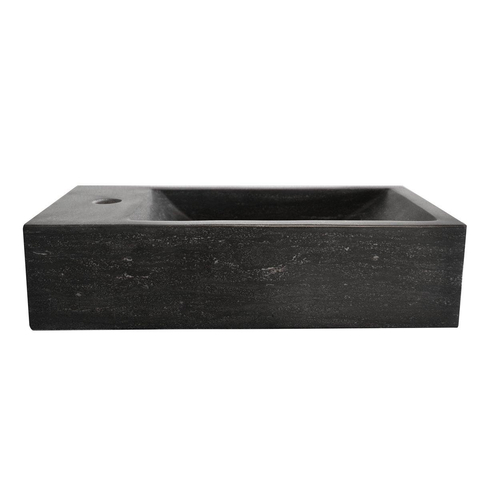 Ce lavabo compact est un excellent choix pour ceux qui recherchent une solution élégante et durable pour une petite salle de bains, un WC ou un WC invité. Grâce à ses dimensions de 40x22x10 cm, ce lavabo s’adapte parfaitement aux espaces où chaque centimètre compte, sans compromettre l’apparence ni la qualité. La pierre dure avec une finition légèrement satinée confère au lavabo un éclat naturel et mat qui ajoute chaleur et caractère à votre intérieur. Grâce à la couche de cire transparente protectrice, la surface reste belle plus longtemps et résiste à l’usage quotidien. Ce lavabo est idéal pour ceux qui apprécient un aspect robuste mais raffiné ainsi qu’un produit fait main offrant ce petit plus d’unicité. Notez que le robinet, le siphon et le bouchon d’évacuation ne sont pas inclus et qu’une bonde fixe est recommandée pour un fonctionnement optimal.Conception compacte et fonctionnelle pour petits espaces